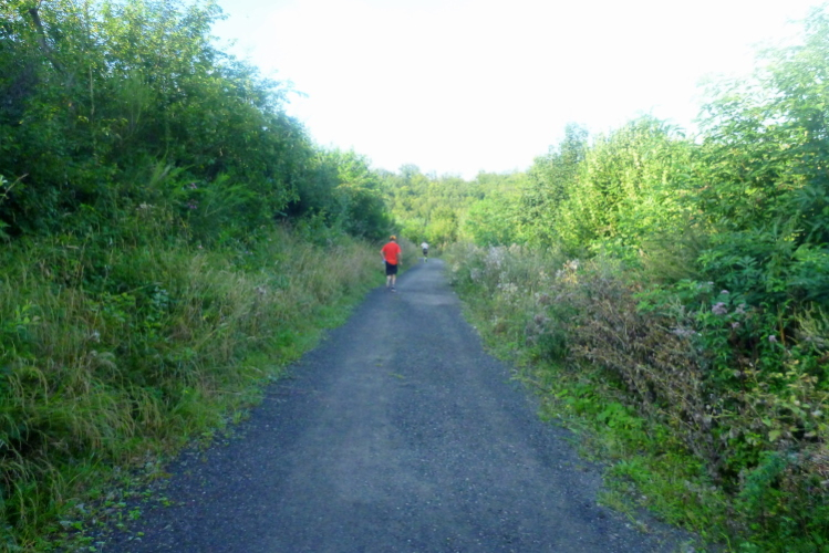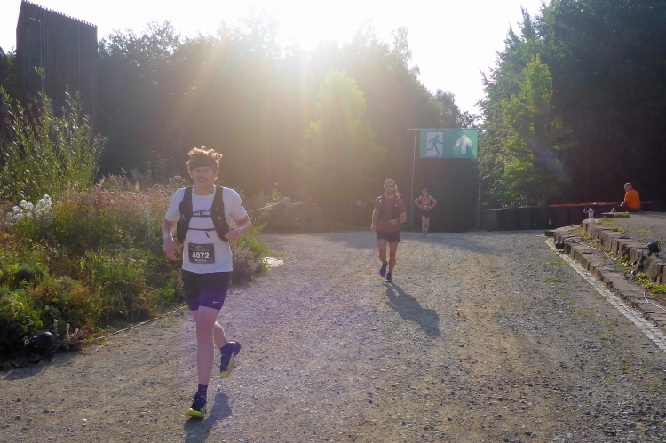 Martin Hoffmann von :anlauf Siegen moderiert gekonnt und schickt uns im Minutentakt auf die Reise. Das allerdings von ihm aus zum letzten Mal, denn er hat sein Unternehmen veräußert, wie man so munkelt. Vorbei an der Sieg-Arena entdecke ich nach der erstmaligen Überquerung der Sieg direkt etwas Vorbildliches: Hier existiert eine 2,2 km lange, beleuchtete und im Winter von Schnee und Eis befreite Laufrunde. So etwas weiß man als Laufjunkie doch besonders zu schätzen. Über einen schönen, fluffigen Trail bestreiten wir den nächsten Kilometer und arbeiten auch die ersten Höhenmeter ab. Wer sich darauf vorbereitet hat, kann jetzt die Abraumhalde der ehemaligen Johanneshütte Ziegelberg als deren letztes Überbleibsel erkennen, bevor der erste Gipfel ruft.