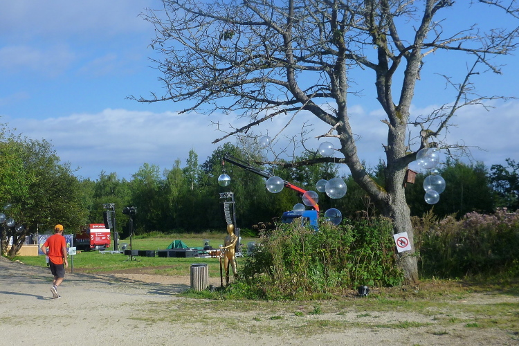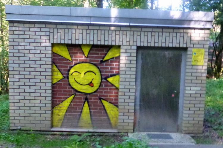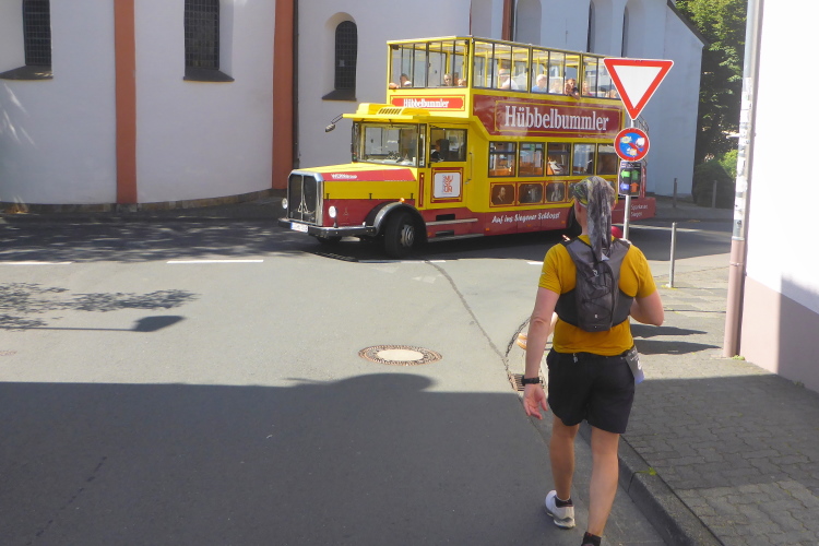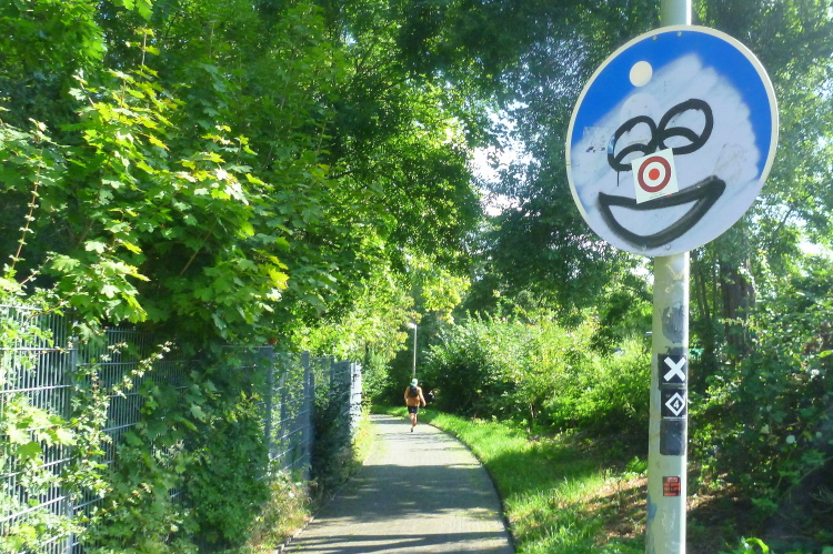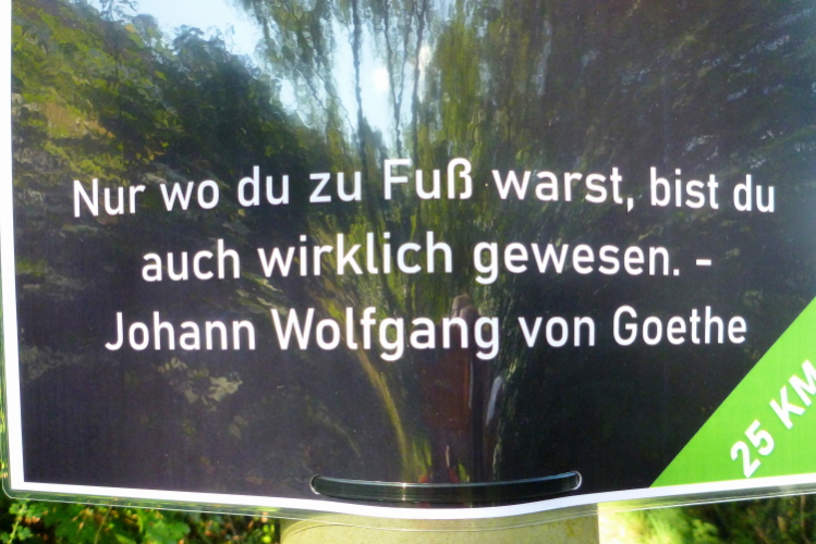 Wer erinnert sich noch an den Hans-guck-in-die Luft aus dem Struwwelpeter? Der landete im Hafenbecken, weil er nicht auf den Boden sah. Der Wolfgang landet in der falschen Richtung, weil er fasziniert nach einer Deutschlandfahne und derer von Schalke 04 stierte. Glücklicherweise fallen mir die fehlenden Bodenmarkierungen schnell auf und es geht fast genauso schnell zurück auf den Pfad der Tugend.