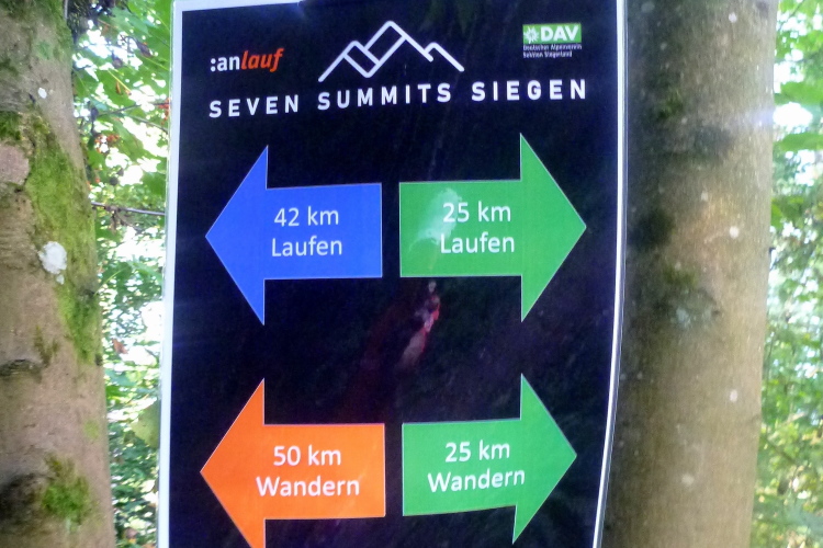 Seven Summits (Sieben Gipfel) Siegen sind das Versprechen der Organisatoren, einen Stadtlauf mit dem von Läufen im Bergland bekannten Gipfelglück zu kreuzen. Ob Siegen wie Rom tatsächlich auf sieben Hügeln gebaut wurde oder doch deren acht zählt und nicht sogar zehn Berge im Stadtgebiet zu finden sind, ist letztlich unwichtig. Man hat sich eben auf sieben Hügel geeinigt, über die man uns zu jagen beabsichtigt. Natürlich besitzt alleine die schiere Zahl schon etwas Magisches: Man denke nur an Siebenmeilenstiefel, sieben Geißlein, sieben Brücken oder sieben Zwerge – schon lange vor den Märchen war die Sieben insbesondere im Judentum eine besondere Zahl gewesen.