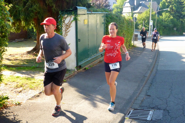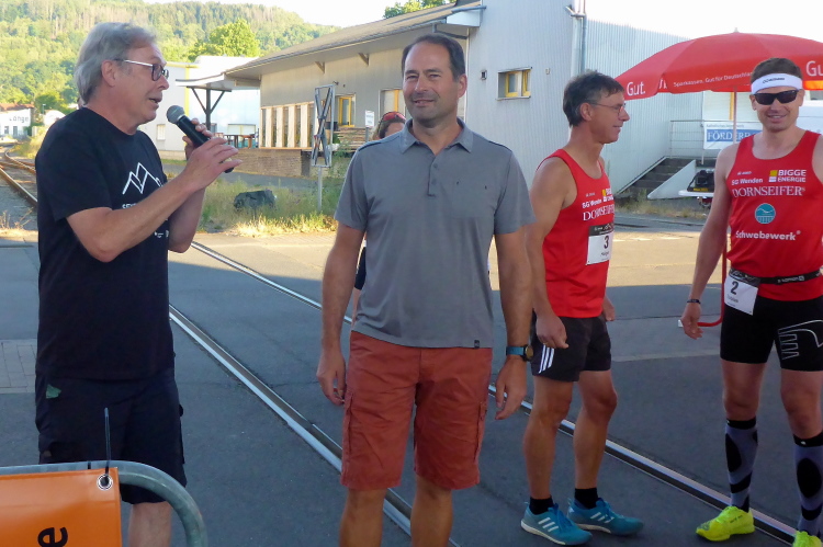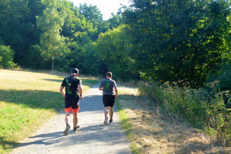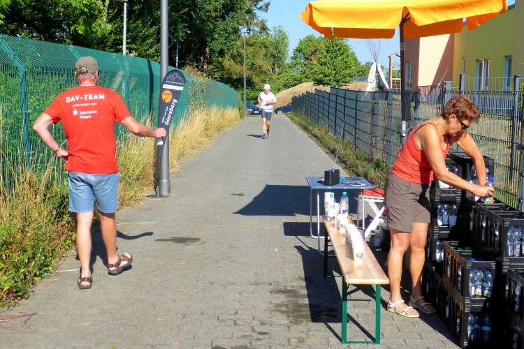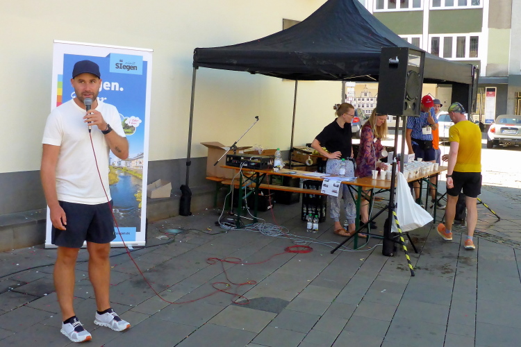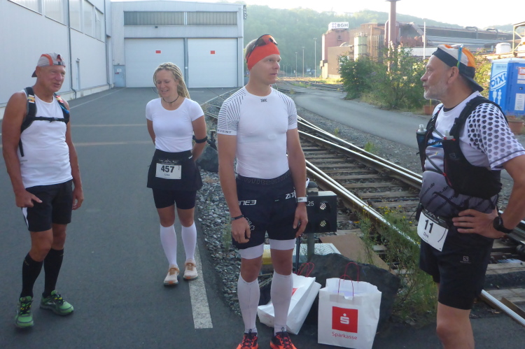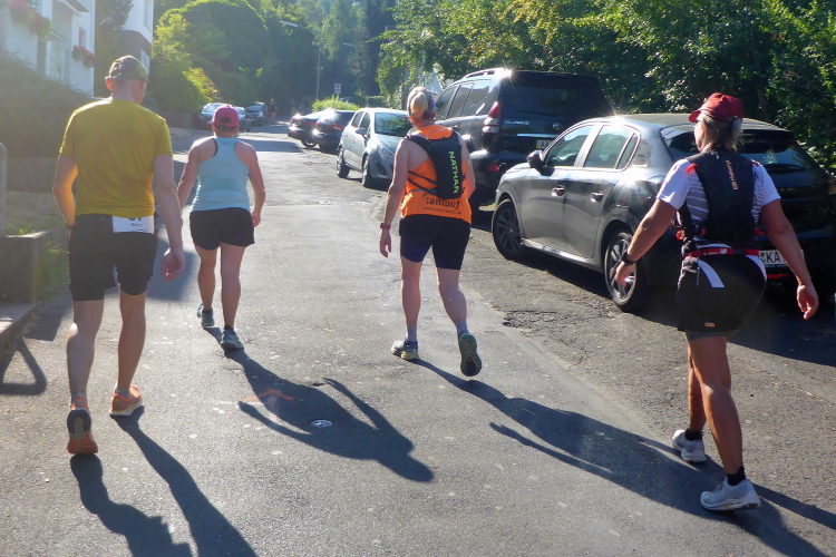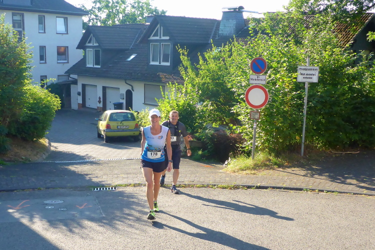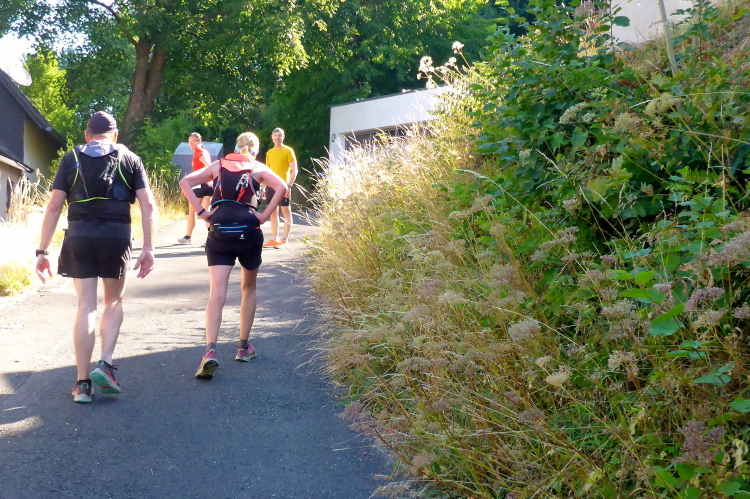 Die Route verläuft diesmal andersherum im Uhrzeigersinn um Siegen herum. Hitze ist auch angekündigt, schon morgens sind die 20 Grad schnell erreicht, bis 27 wird das Thermometer steigen. Zur Vorbereitung finden wir auf der Homepage von Anlauf-Siegen umfangreiches Informationsmaterial, außerdem gibt es alle wichtigen Hinweise auch noch auf mehrere Emails verteilt im Vorfeld. Hier sorgen Martin und Silas für einen Informationsfluss, von dem sich so mancher große Veranstalter eine Scheibe abschneiden kann.