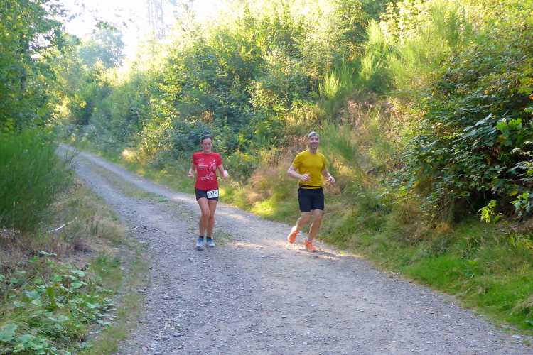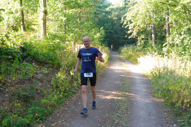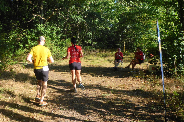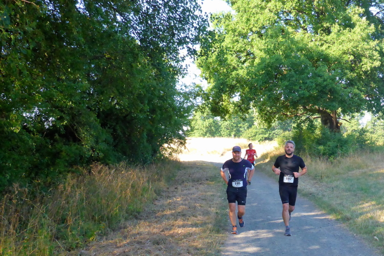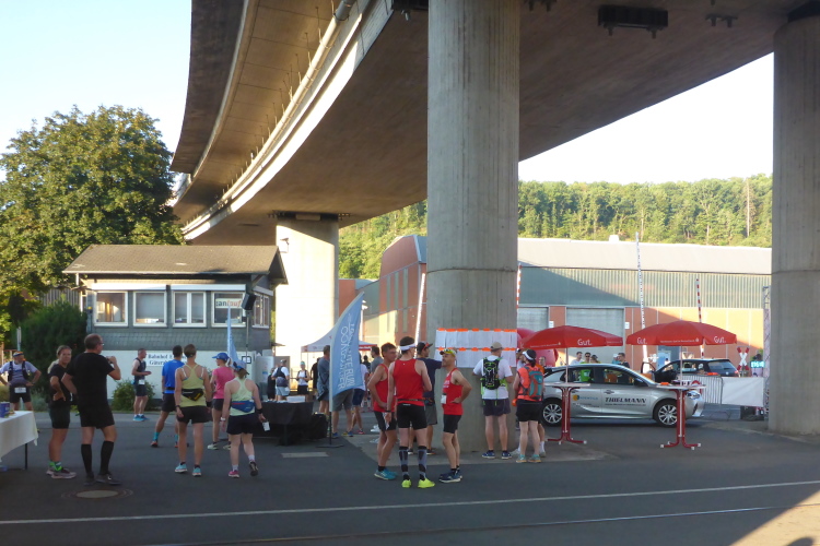 Für mich ist diese zweite Auflage der Erstversuch, hörte ich doch aus dem vergangenen Jahr, dass es eine harte Nummer ist. Dirk Thielmann hat als Sponsor die Strecke vorab getestet und freut sich über mehr Trails statt Teer und stellt des weiteren „noch mehr Stufen“ fest. Ich bin gespannt. Im Startbereich geht es entspannt zu, die Letzten holen ihre Startunterlagen, es gibt schon das erste Wasser und ebenso Interesse an den vorhandenen Dixis. Martin Stinner bereitet die Zeitnahme vor, Martin Hoffmann gibt übers Mikro die letzten Infos bekannt und wenige Sekunden nach 8 Uhr machen sich die ersten auf die Reise. So geht es im Minuten Takt weiter und die 33 Minuten, bis wir dran sind, vergehen wie im Flug.