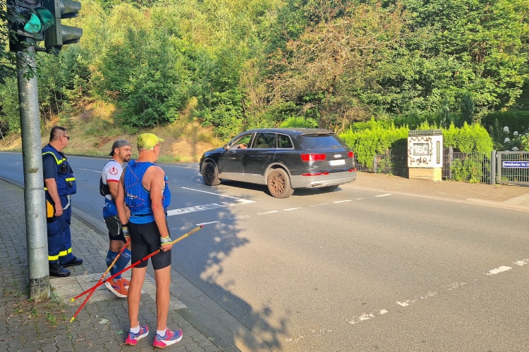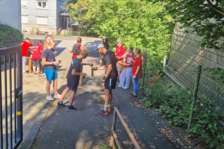 Kurz nach mir kommen die ersten 25-km-Wanderer rein. Zwei Jugendliche, die mich an den Steigungen immer wieder deutlich überholt haben, trotz Stiefeln und Rucksack, nur Bergab sind sie halt nicht laufen. Auf jeden Fall auch ernst zu nehmende Sportler.