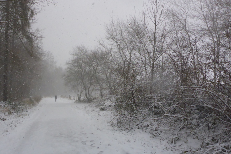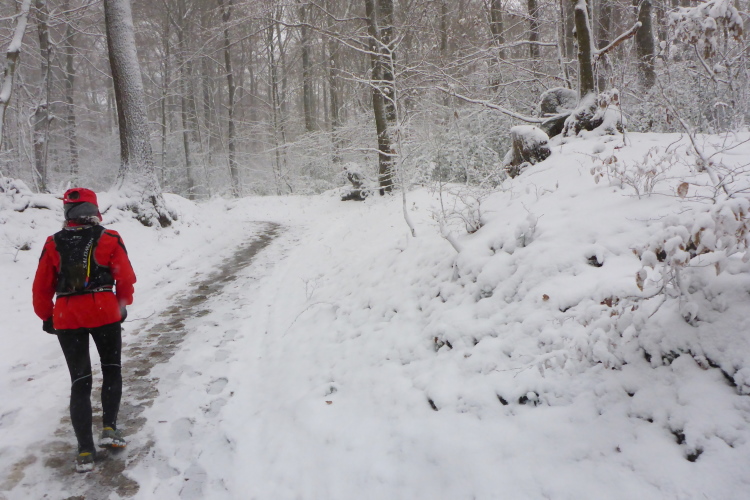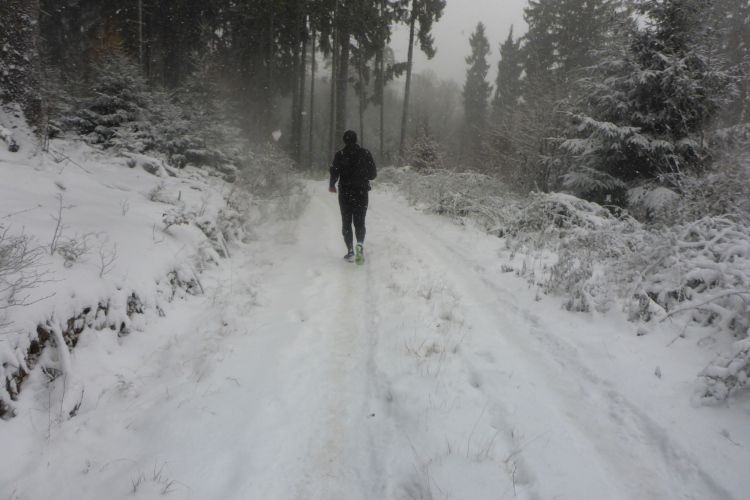 Der Weg hinauf zum Hausberg Bad Honnefs, dem Himmerich, wird zum Kampf, der Typ mit dem Schneehammer haut jetzt voll zu. Das Gute ist, der Lauf wird niemals abgesagt, ich werde überleben und finishen sowieso.