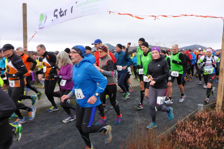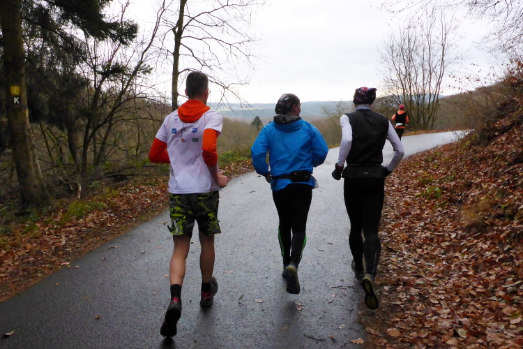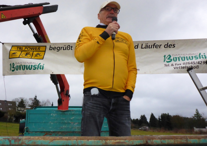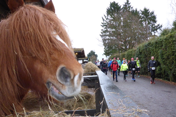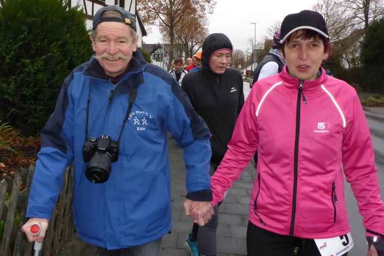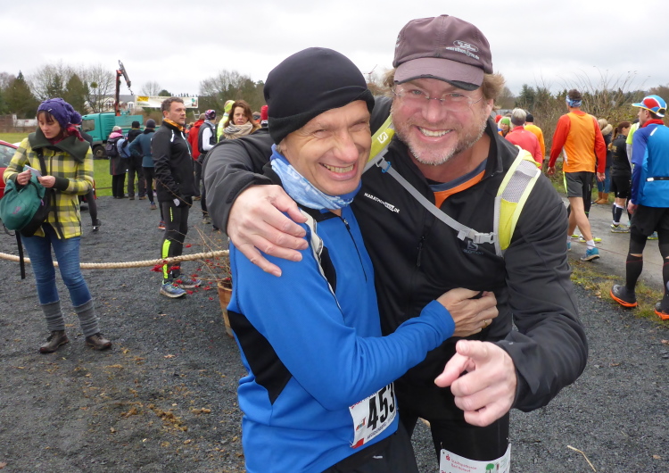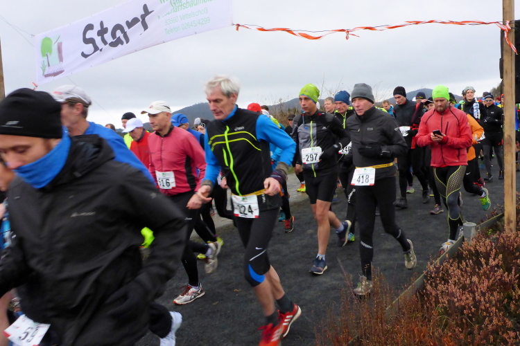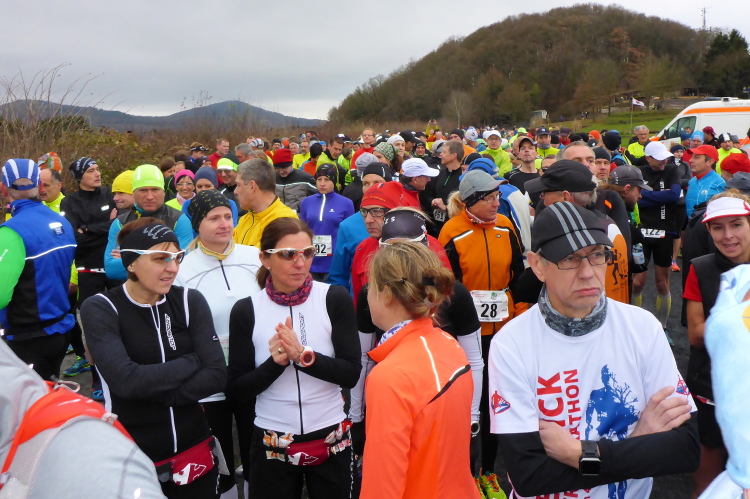 Der Siebengebirgsmarathon ist der schönste aller Wintermarathons in Deutschland. Mehrfach werde ich angesprochen, ich solle dies unbedingt erwähnen. Wenn sich die Halbmarathonläufer (Start 9 Uhr) zum Startort begeben, wird es ruhiger in der Halle, die Schlange vor dem Klo lichtet sich, bis irgendwann auch wir Marathonläufer Richtung Start (10 Uhr) dackeln.