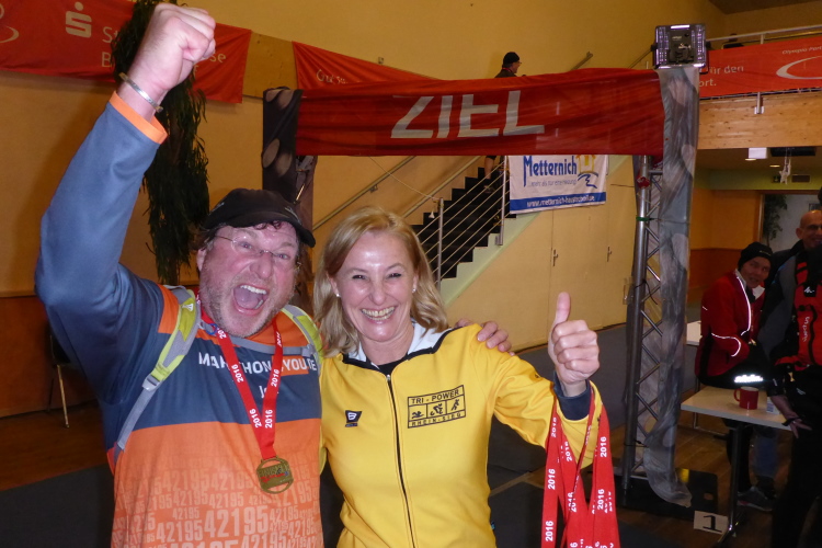 Zieleinlauf in die Aegidienberger Festhalle. Grandiose Stimmung, von allen Seiten erzählen mir lachende Gesichter von neuen persönlichen Bestzeiten und den gewonnenen Sportsocken. Ich freue mich, einen der schönsten Winterläufe zum xten Mal freudig absolviert zu haben. Der 7 Gebirgsmarathon separiert sich eindeutig von allen anderen Läufen in dieser Jahreszeit. Einsame Klasse. Lange sitzen wir noch bei dem Getränk, mit dem ich groß geworden bin. Dann separiere ich mich. Ich möchte wissen, ob im Swinger Club Separatisten noch willkommen sind.