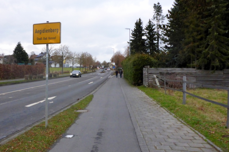 An der Ortseinfahrt zu Aegideinberg steht eine Geschwindigkeitsmessanlage: „ Sie fahren 11 Kilometer pro Stunde“ Das halte ich auch die letzten 2 Kilometer durch und staune über mich selbst.