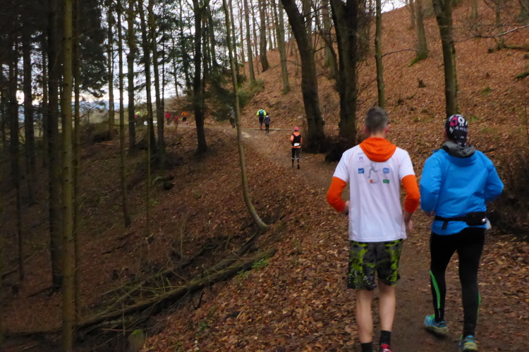 Ruhig liegt nun das Siebengebirge vor uns. Ein toller Blick, dann geht es in den Wald und zurück zum Startgelände. Im Schmelztal ist die erste Verpflegungsstelle (km 5). Wer zu viel Kleidung dabei hat, der kann diese hier deponieren. Wir kommen bald wieder, es geht erstmal hinauf Richtung Löwenburg(455 m).