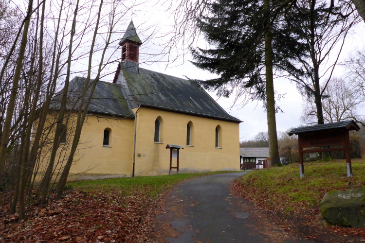Der nächste VP ist an der Kapelle „Das Auge Gottes“, auf deren Sims geschrieben steht : „Gottes Auge sieht alles“. Hier am VP drückt das Auge mal ein Auge zu, denn es soll Holzdiebe und nicht Genussläufer beobachten.