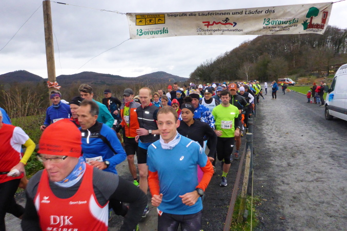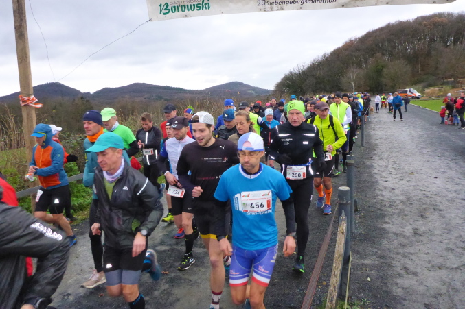 Zum dritten Mal geht es für mich zum Siebengebirgsmarathon nach Aegidienberg. Vor zwei Jahren in totalen Schnee Chaos und letztes Jahr bei strömenden Regen, der sogar teilweise die Markierungen von dannen spülte. Wir standen zu acht auf einer Kreuzung und keiner kannte den Weg. Heute sind vereinzelte Sturmböen und stetig steigendes Regenrisiko angekündigt. Der Halbmarathon mit 500 Startplätzen ist bereits im Vorfeld ausgebucht, von den 600 Startplätzen der Königsdistanz sind noch welche zu haben.