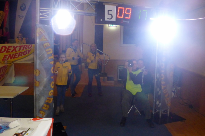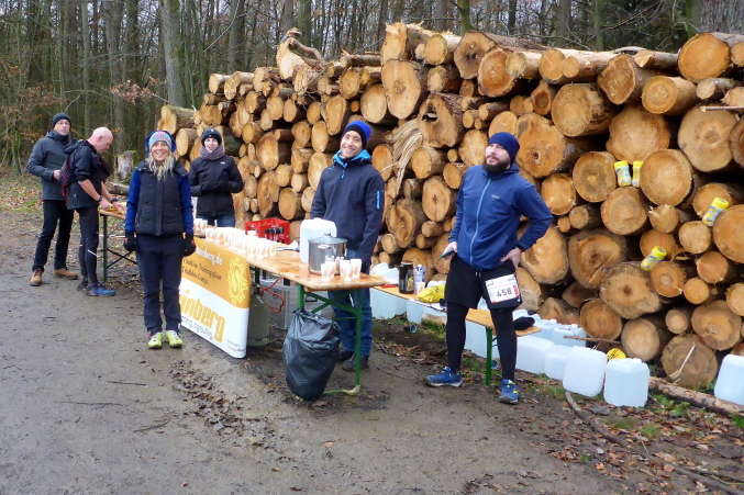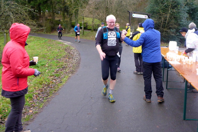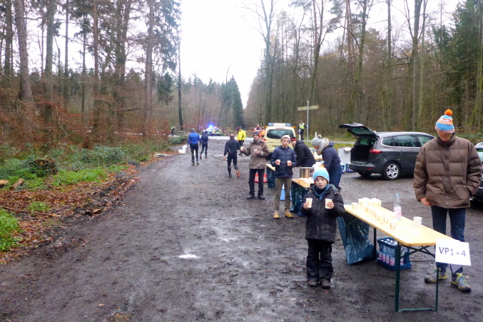 Ich freue mich auf den nächsten VP, traditionell betrieben von Steffi & Gerry Steinberg, aber dann der Schock… Wasser, Iso, Cola… da fehlt doch was? Mangels optimaler isotonischer Getränke entscheide ich mich für Wasser. Na ja, für die letzten 4 Kilometer wird es wohl reichen. Liebe Steffi, nächstes Jahr wünsche ich mir wieder was anderes.