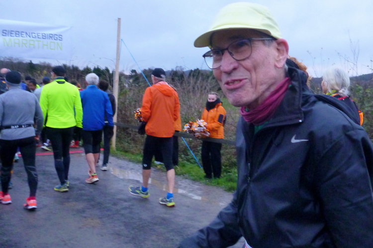 Gerade hier, nur zwanzig Autominuten von Zuhause entfernt, treffe ich natürlich zahlreiche liebe Lauffreunde, von denen ich an dieser Stelle nur Norbert erwähne. Der ist exakt zwanzig Jahre älter als ich und zeigte mir bis vor ganz wenigen Jahren bei langen Läufen regelmäßig die Hacken. Bei unbesetzter Altersklasse M75 wird der M85er in 5:22 Std. (!) schneller als der einzige Teilnehmer der M70 werden. Was für eine Gnade!