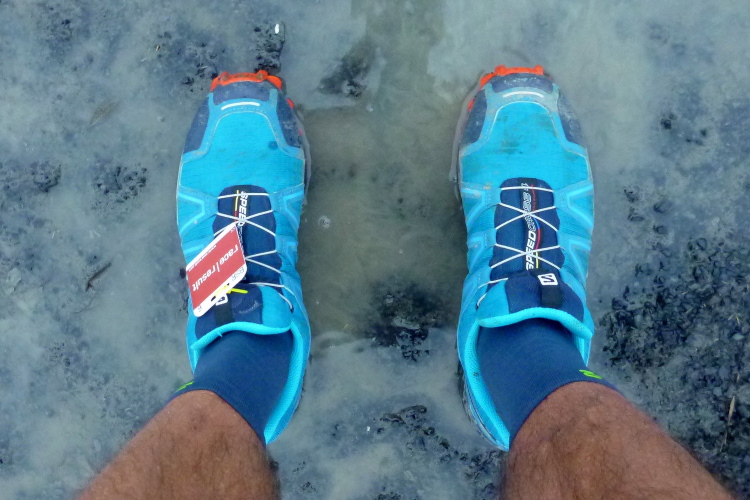 Es wird zunehmend einsam um mich herum, viele befinden sich schon im Ziel. Ich schaue auf die Uhr: 33,33 km liegen hinter mir, 3:45 Std. sind verstrichen. Zu meinen besten Tagen war ich jetzt schon im Ziel. Temporas mutantur. Die langen Geraden bleiben, bereiten mir aber unverändert kein Kopfzerbrechen. Meine untere Peripherie inkl. der Schuhe haben sich immer mehr der matschigen Umgebung angepaßt, aber so kennt man das hier. Wäre es anders, würde doch glatt etwas fehlen.