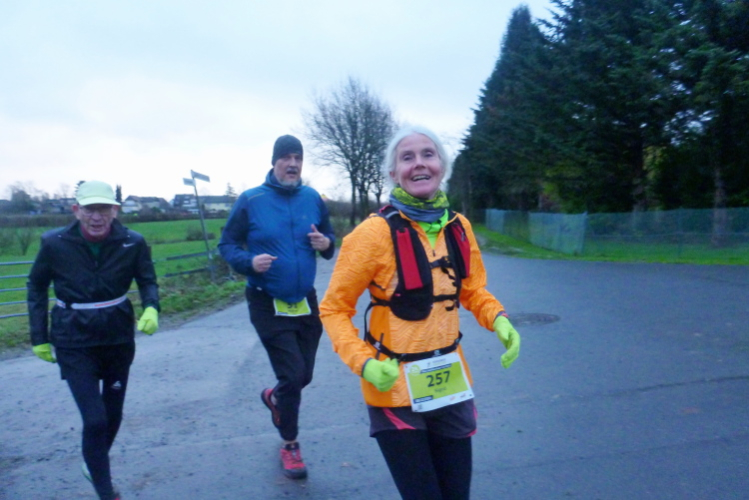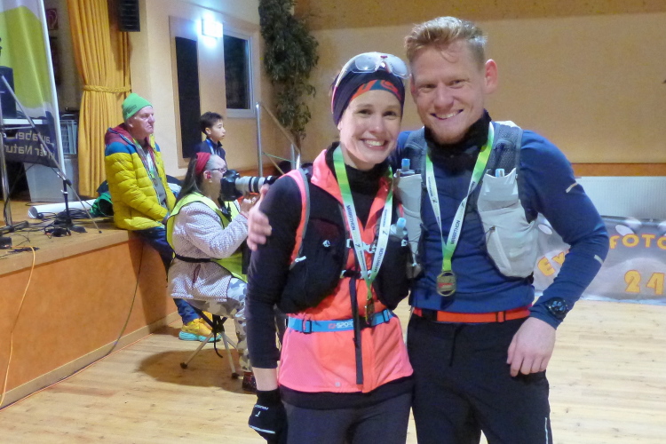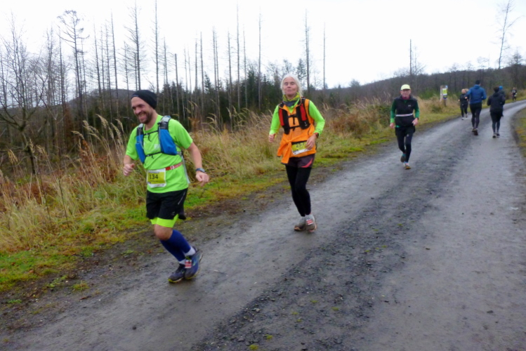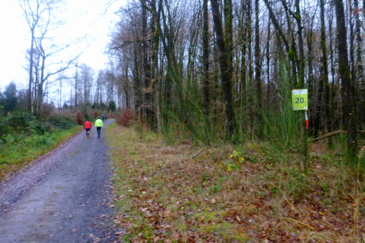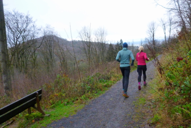 Sigrid begleitet ihren Papa, den eben vorgestellten Norbert, „weil man den alten Herrn ja nicht alleine in den Wald lassen kann.“ Das hatte sie übrigens schon vor zwanzig Jahren so gesagt, als sie selber erst ernsthaft mit dem Laufen begann, das sie bis in die 24 h-Nationalmannschaft brachte. Norbert ist übrigens, nur mal so zur Einordnung, in der M75 100 km-Weltmeister in 9:27 Std. geworden.