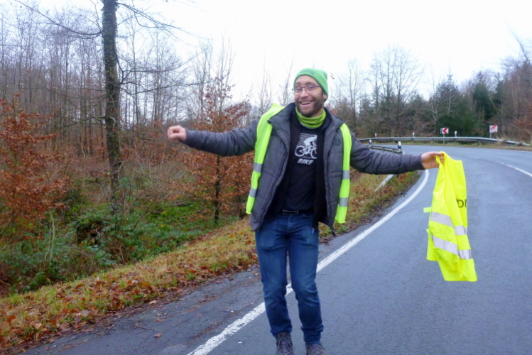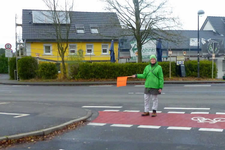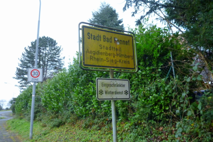 Am folgenden VP wird noch schnell Andrea geknutscht, dann erkenne ich die finale Kreuzung, die das Ende des Waldes signalisiert. Hinter dem Ortseingangsschild von Himberg/Aegidienberg bietet sich ein toller Blick auf die Hügel (nicht Berge!) des Siebengebirges. Ups, noch eine Neuerung, denn die Landstraße zwischen Himberg und Aegidienberg wird nicht direkt, sondern erst am Kreisel über den Zebrastreifen überquert. Im Nachhinein frage ich mich, warum das nicht schon immer so gewesen ist, mir erscheint diese Lösung weniger aufwendig. Thomas hilft einem älteren Herrn respektvoll über die Straße, worauf der noch anderthalb km vor der Brust hat. Meine Herren Gesangsverein, was bin ich hier im Jahre des Heils 2002 abgekackt! Heute habe ich mir die Sache gut eingeteilt und fliege vergleichsweise im 5:30er Schnitt, für meine heutigen Verhältnisse zügig, zur Halle.