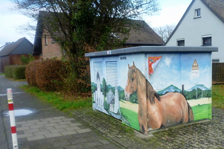 Bald schon trolle ich mich aus der Halle, mache mich auf den wenige Minuten dauernden Weg zum sog. Gangpferdezentrum. Hier bietet man Ferienfreizeiten, Lehrgänge, Pensionsplätze, sowie allerlei Sport und Spaß mit Pferden an. Die Hottehüs sind alle beim Frühstück und schenken uns kaum Beachtung. Nahrungsaufnahme geht auch bei denen vor.