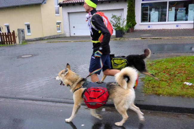 Hunde sind willkommen, erhalten eine eigene Startnummer. Jedes Jahr laufen hier mehr Marathonhunde, alle äußerst diszipliniert. Halbmarathonläufer sind nicht so, starten deswegen eine Stunde vor uns.