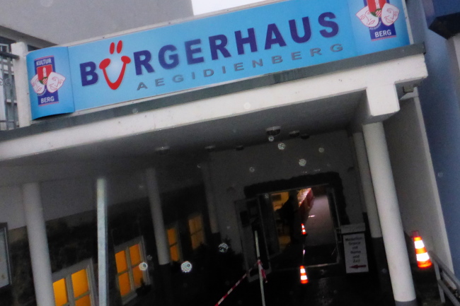 Vor der Halle steht Mohamad. Schon lange geduscht, drückt er mir die Autoschlüssel in die Hand. Perfektes Timing. Und Zack! Da bin ich in der Aegidenhalle und seh absolut nix mehr! Was, wie, wer bin ich? Alles beschlagen.