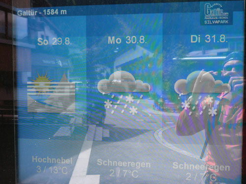 Vom Wetter her darf ich mich heute auch als „Hans im Glück“ bezeichnen. Am Donnerstag herrschten 30 Grad, gestern hat es nur geregnet und von den Bergen war nichts zu sehen und Montag und Dienstag soll es schneien, bis runter in den Ort
