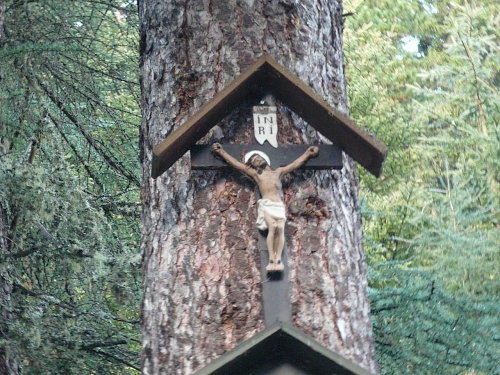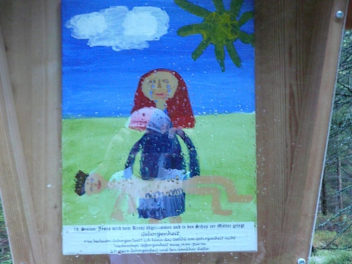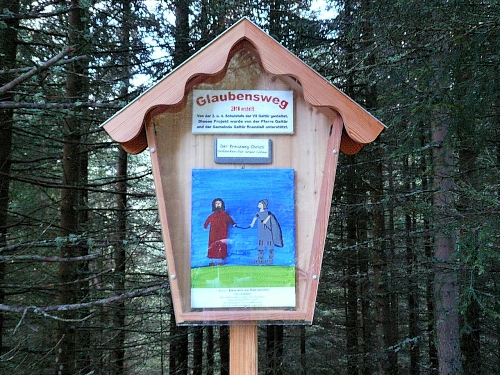 Wer in sich gehen mag, auch dafür ist gesorgt, denn auf diesem Teilstück des Glaubensweges sind einige Tafeln mit religiösen Bildern angebracht. Der Fahrweg hoch zur Alm verläuft fast vollständig im Wald, einige Blicke sind jedoch immer wieder zum tosenden Lareinbach möglich.