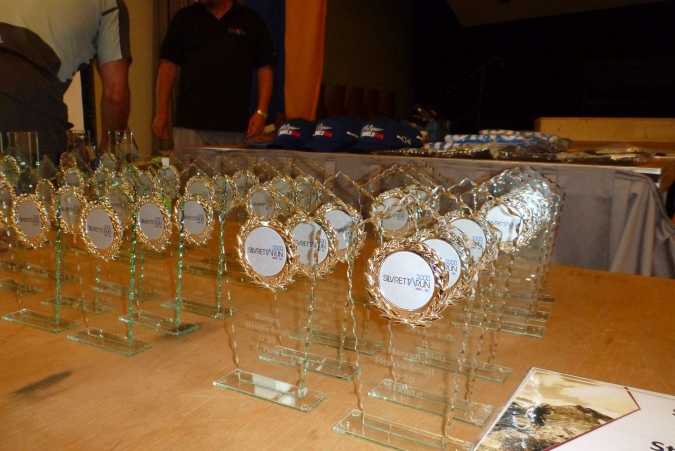 Nach einigen Bildern von den Zielläufern verziehe ich mich für eine frische Dusche ins Hotel und besuche anschließend die Siegerehrung, die in der Halle durchgeführt wird.