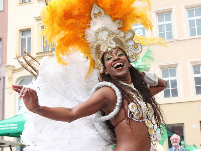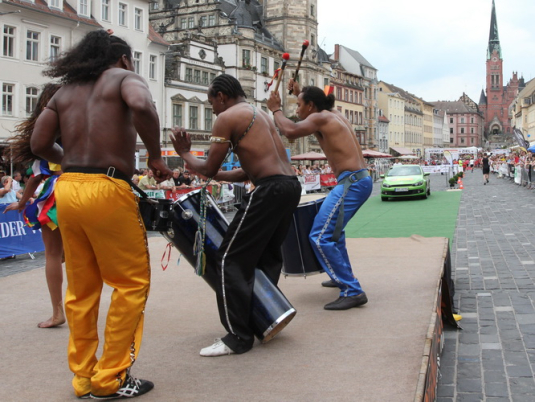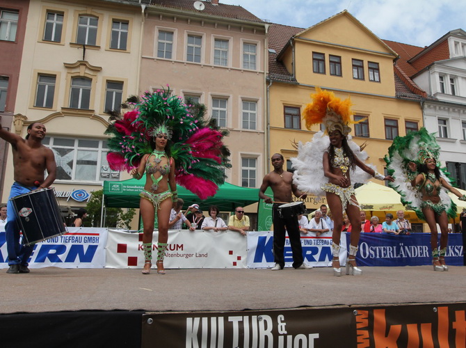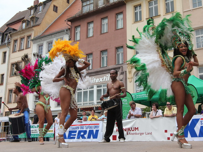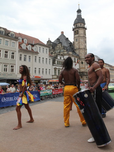 Dann haben die Kleinen ihren Spaß. Sichtlich genießen sie es, umjubelter Mittelpunkt zu sein. Weder die Musiker noch der Stefan fahren ihre Engagement herunter sondern drehen für den Nachwuchs voll auf. Der Markt bebt, Altenburg lebt – und wie!