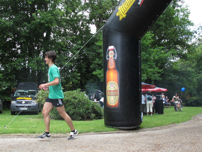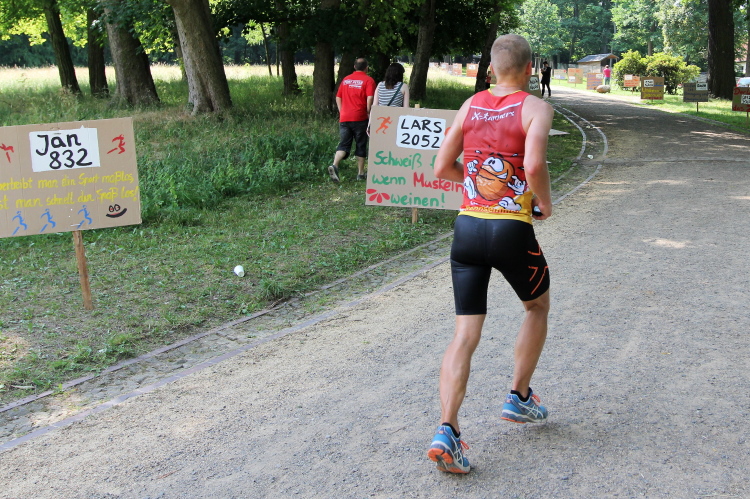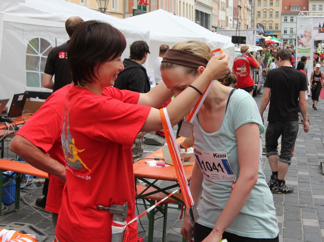 Was aber dann kommt, habe ich bei einer vergleichbaren Veranstaltung noch nicht erlebt. Jede Menge Zuschauer, die Live-Band und jetzt zwei Moderatoren halten die Stimmung am Höhepunkt. Die, die vom Orga-Team sonst selbst auf den Strecke unterwegs sind, gehen voll mit, klatschen die Finisher ab und gratulieren. Wer hier spurtet, ist selber schuld. Genießen ist angesagt.