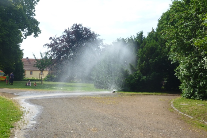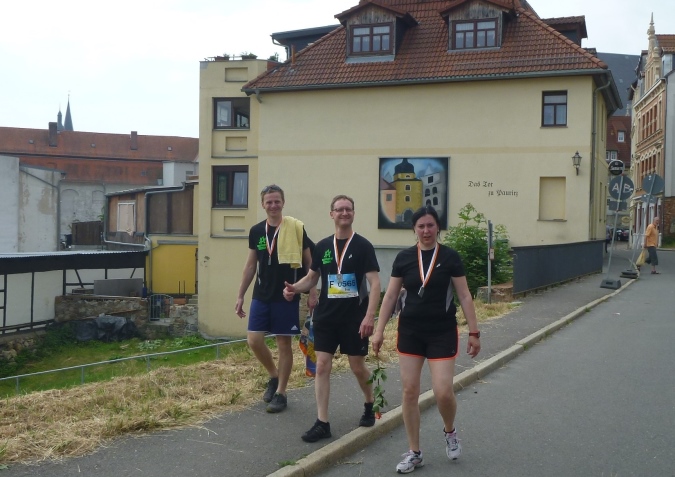 Dafür sorgt später ein Nachmittagsschauer für einen Großeinsatz der Feuerwehr. Die Straße vor unserem Hotel ist zeitweise überflutet und die Pumpen versuchen auch am Sonntagmorgen noch, den Keller leer zu bekommen. Der Vorteil eines Samstagslaufs besteht in der Möglichkeit, jetzt noch einen Sommertag am Sandstrand eines gefluteten Braunkohletagebaus zu verbringen. Bevor wir die Heimreise antreten, zieht es uns deshalb noch kurz zum idyllischen Haselbacher See. Da bin ich dann doch ein wenig neidisch auf die Sachsen und Thüringer. Gut, hohe Berge wie in unserer Heimat gibt es hier nicht, aber die kleinen Gemeinheiten vom welligen Marathonparcours stecken uns sicher noch eine ganze Weile in den Beinen.