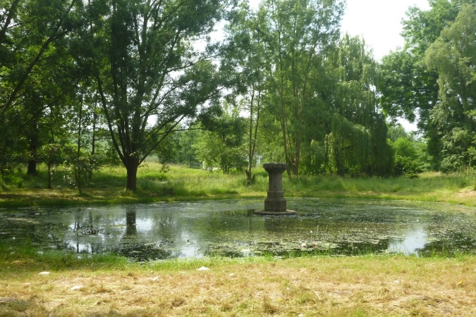 Jetzt wird es insgesamt ruhiger – und auch irgendwie wärmer. Interessanterweise erscheinen die Anstiege nun länger und anstrengender. Das Freibad lockt. Hätte ich mich doch nicht vorher im Internet über die Vorzüge dieser Einrichtung informiert! Die Frösche im Tümpel halten Mittagsruhe. Dafür sparen die Mädels an der nächsten Abzweigung nicht mit aufmunternden Worten. Am Bismarckturm, 1915 als Aussichtsturm fertiggestellt, fetzige Musik vom Band. Mir fallen jetzt erst die Wohnblöcke hinter den Bäumen des Stadtparks auf. So abgeschieden ist das also gar nicht. Ein Zuschauer, den wir hier schon vor gut zwei Stunden gesehen haben, klatscht beharrlich weiter Beifall. Das nenne ich ausdauernd.