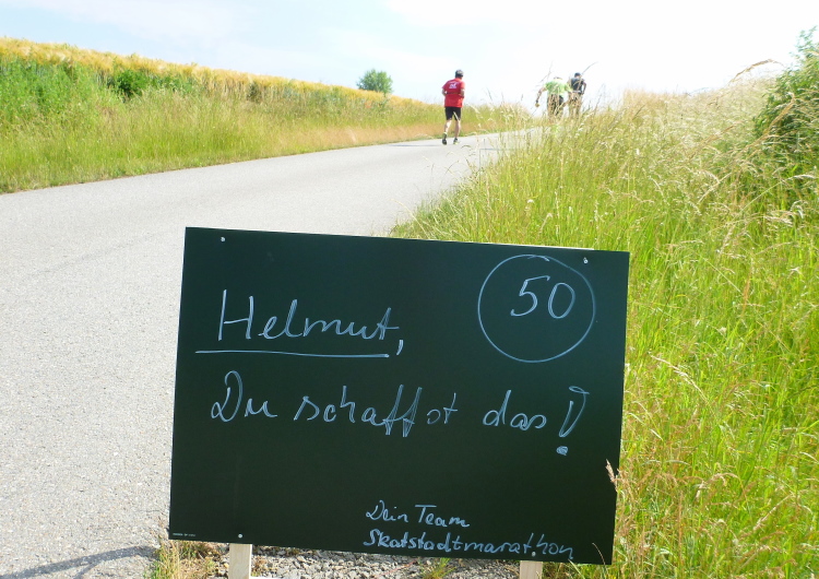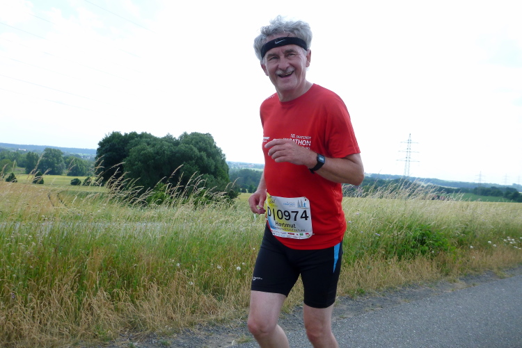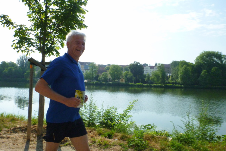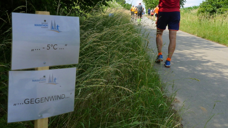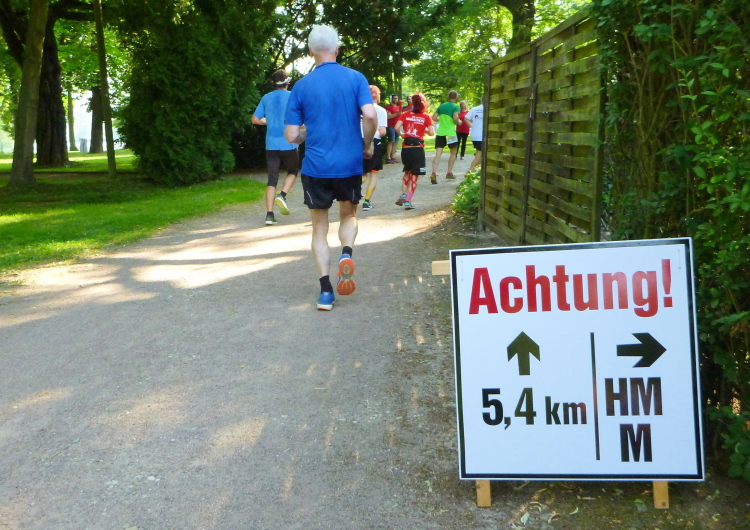 Die zweite Runde ist perfekt. Warum? Man ist nie alleine. Ich fühle mich jetzt im Feld der 13,3 Kilometer-Läufer pudelwohl. Vor zwei Jahren bin ich hier auf Heike Drechsler aufgelaufen, heute sehe ich Robert Wimmer vor mir. Kilometer 30 ist erreicht. Alle kämpfen mit der Hitze. Aber es hätte schlimmer kommen können: „Strömender Regen, Hagel“, „Minus 5Grad und Gegenwind“ . So trösten die Schilder beim Honda Treff in der Unterführung. Die fahren weiterhin die harte Linie - mit ihrer Musik.