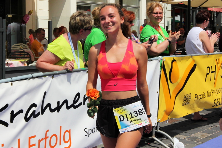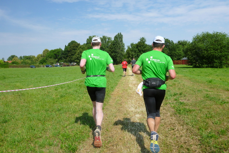 Und dann wird gefeiert bei Bier und warmer Suppe. Ich stehe noch im Zielbereich, als ich von weitem eine Läuferin im Schlappschritt sehe, den ich kenne. Trotzdem muss ich zwei Mal hinschauen. Ja, das ist meine Henny. Sie ist halt unverwüstlich und auf der anspruchsvollen Altenburger Strecke kaum langsamer als kürzlich auf dem flachen Citykurs in Düsseldorf. Respekt.