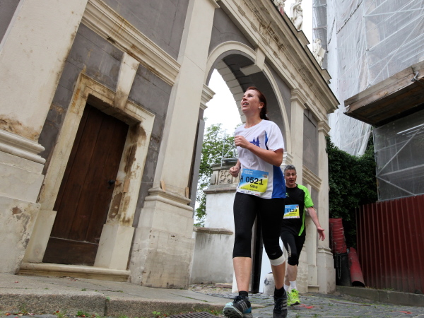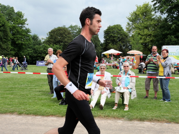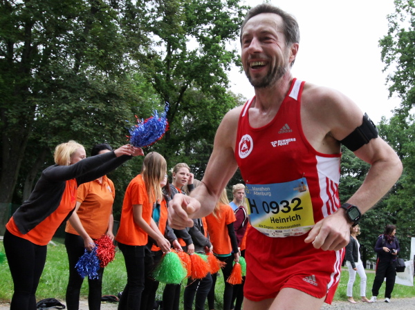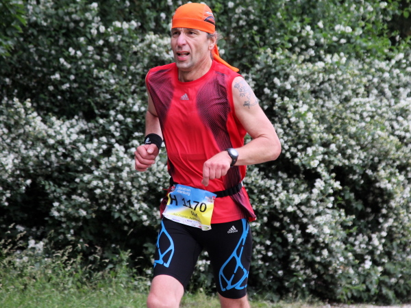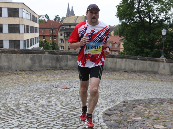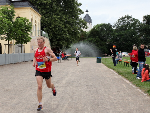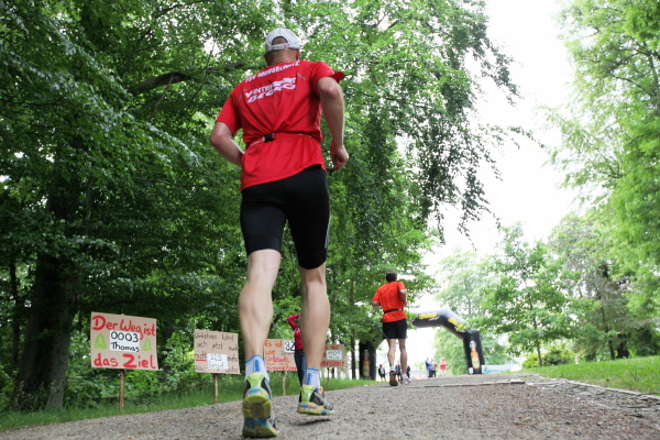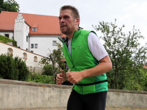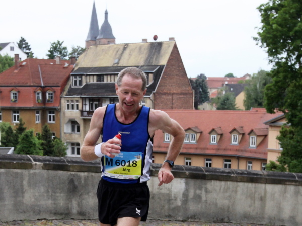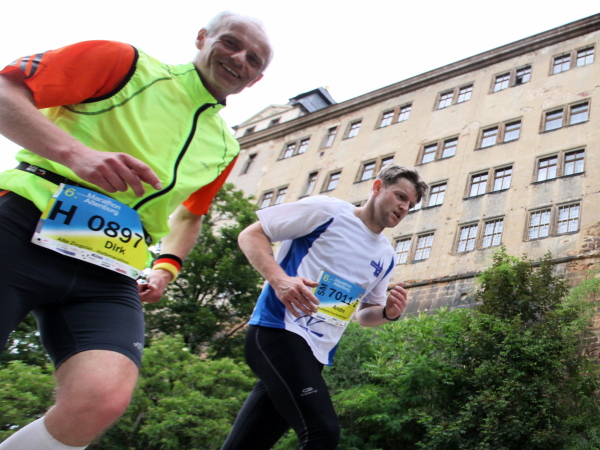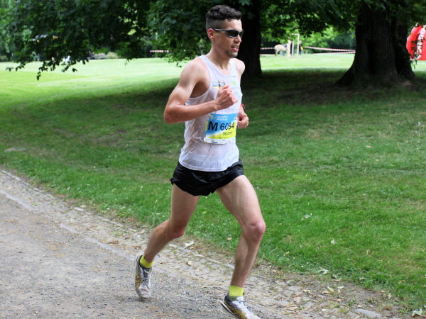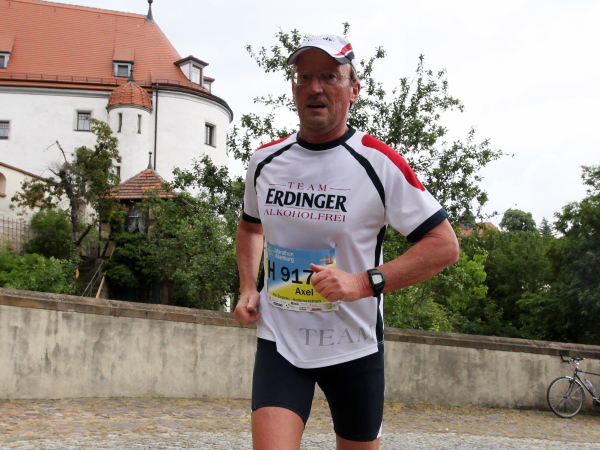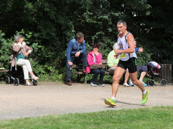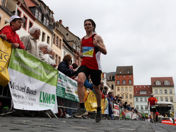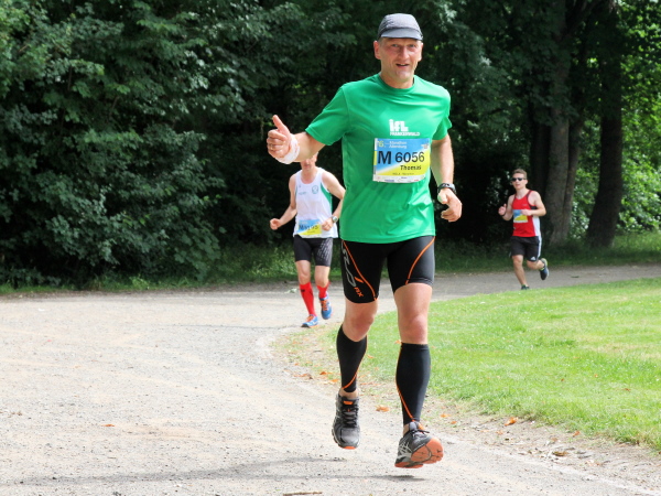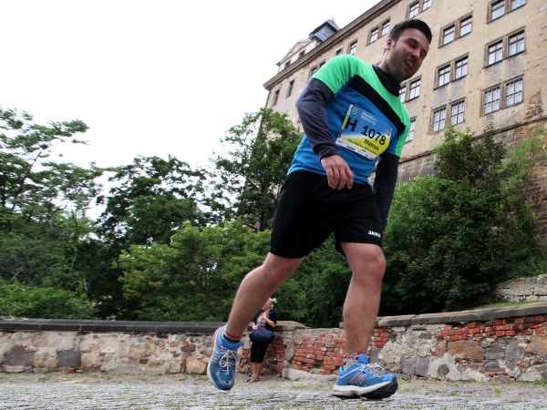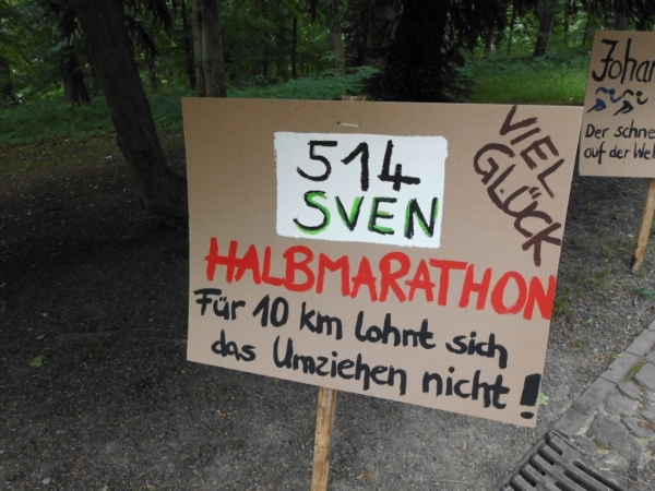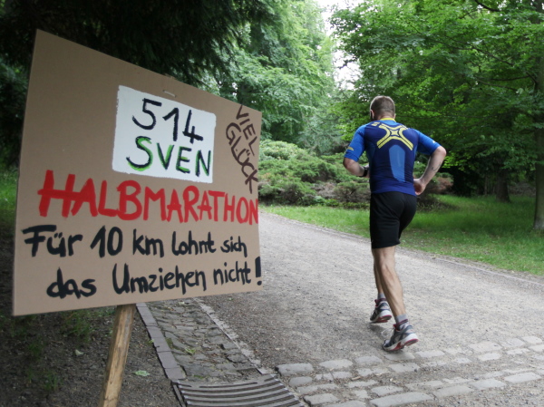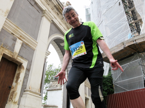 An der Spielkartenfabrik werde ich überholt. Ein Wahnsinnstempo – der Läufer ist bestimmt doppelt so schnell wie ich. Aber darauf braucht er sich nichts einzubilden, er hat ja auch nur die Hälfte meiner Strecke zurückzulegen... Es ist Lars Rößler, er hat noch reichlich fünf Kilometer vor sich - dann hat er den Halbmarathon gewonnen!