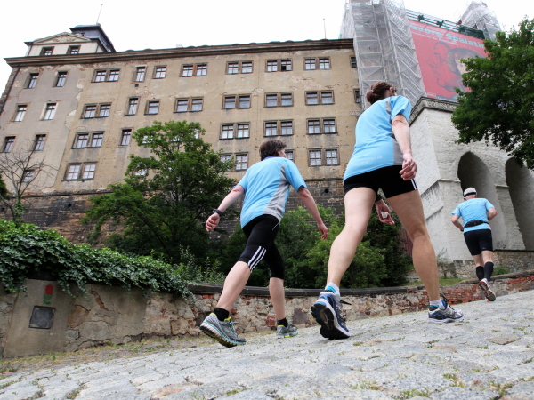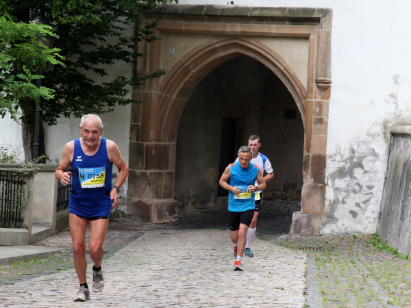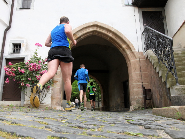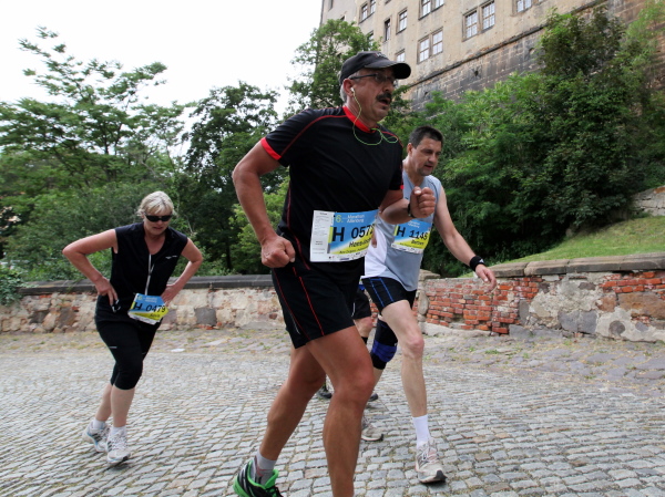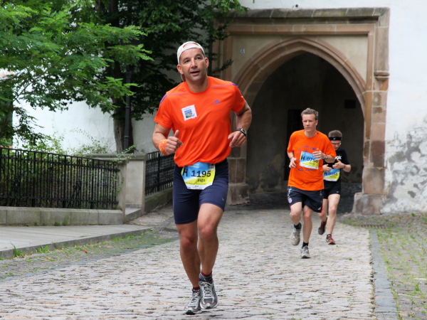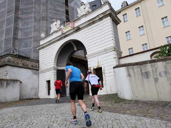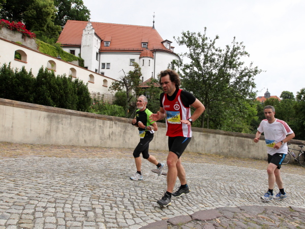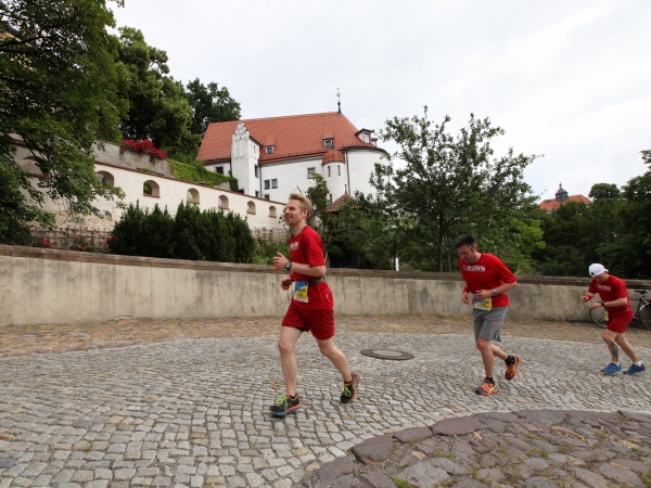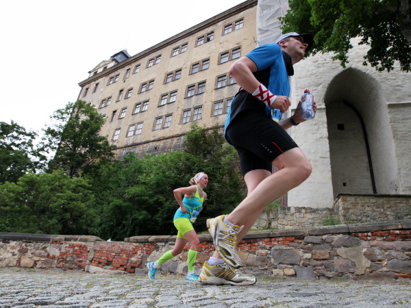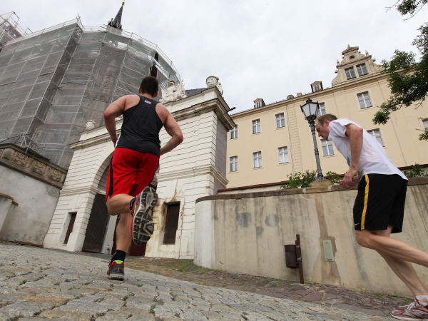 Das Altenburger Schloss. Leider laufen wir nicht in den Innenhof. Aber wer mehr vom Schloss und den anderen Museen der Stadt sehen will - heute ist Museumsnacht! Und wer sich die Medaille vom Marathon um den Hals hängt, bekommt freien Eintritt.