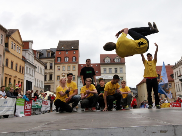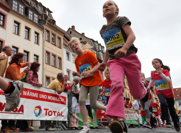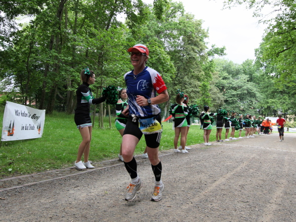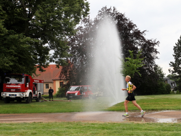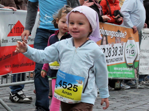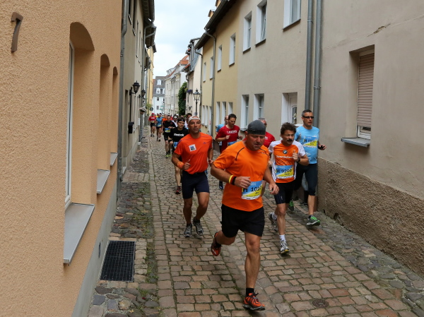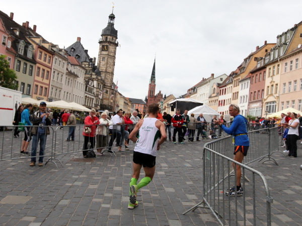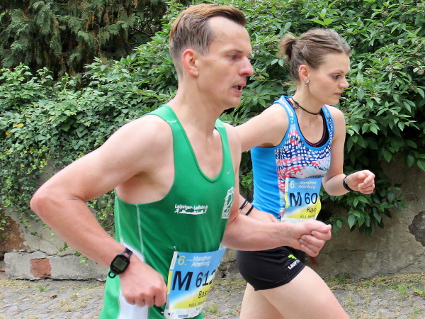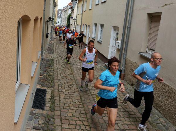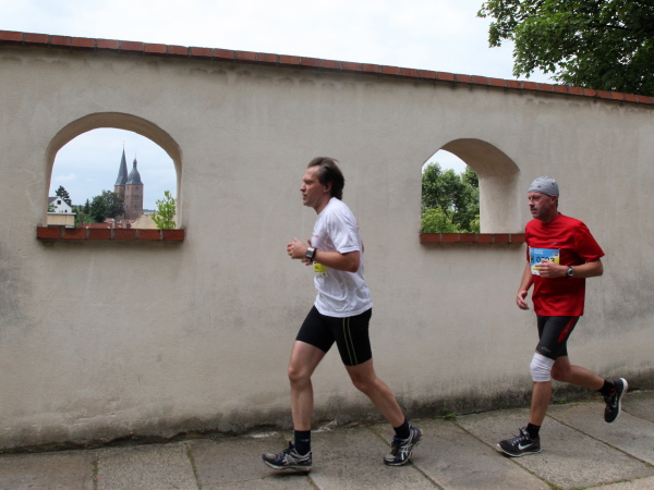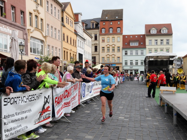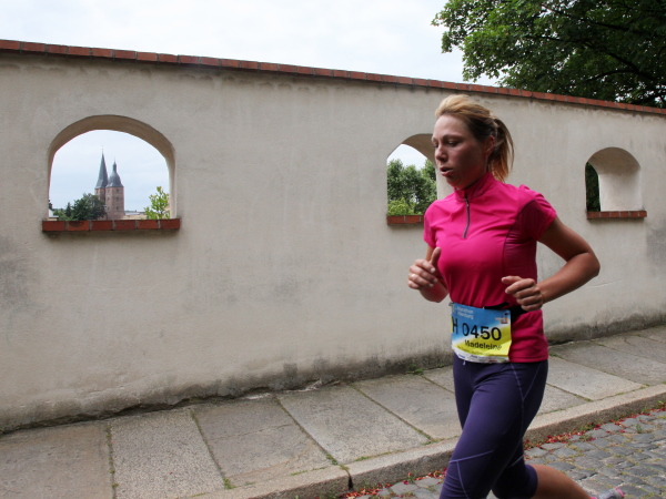 Aber ich bin trotzdem etwas verärgert. So nett dass hier auch alles ist – wo sind meine Sambatänzerinnen? Nicht da! Ich bin enttäuscht, vor Enttäuschung vergesse ich in die zweite Runde abzubiegen und laufe Richtung Ziel. Obwohl, das stimmt nicht ganz. Denn ich vergesse hier fast jedes Jahr abzubiegen. Aber auch auf unter Orientierungslosigkeit leidende Läufer sind die Altenburger Organisatoren vorbereitet. Da steht einer, der mich wieder einfängt und auf den richtigen Weg bringt.