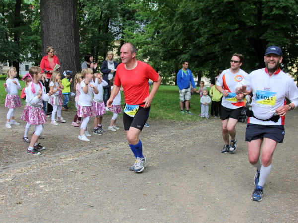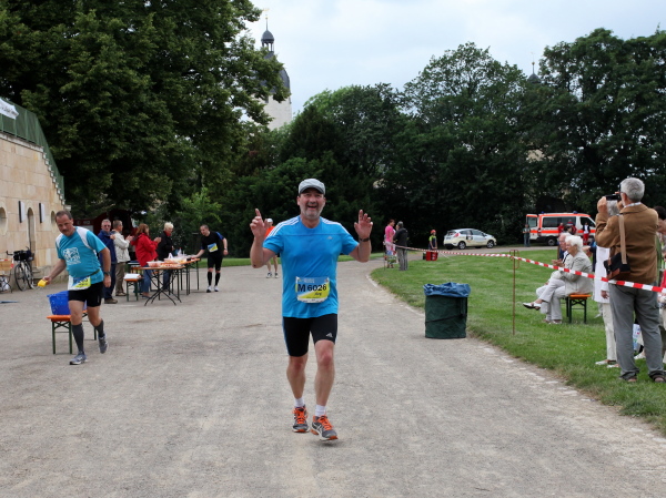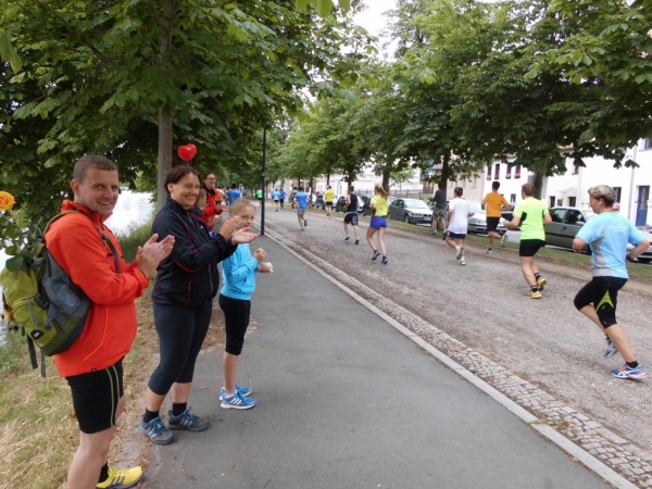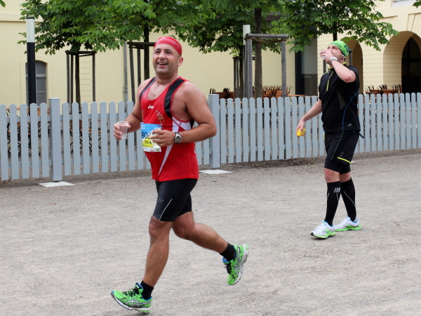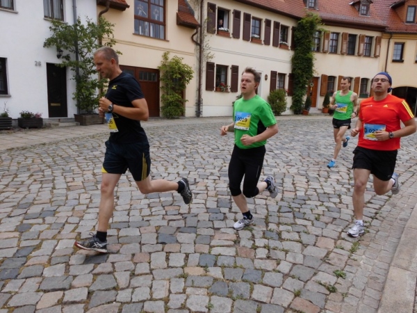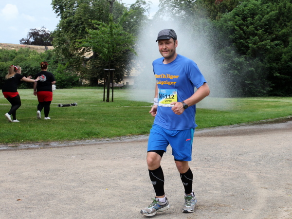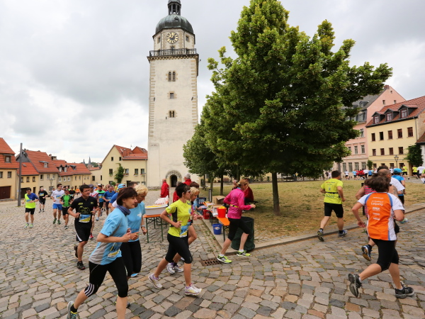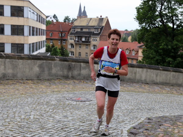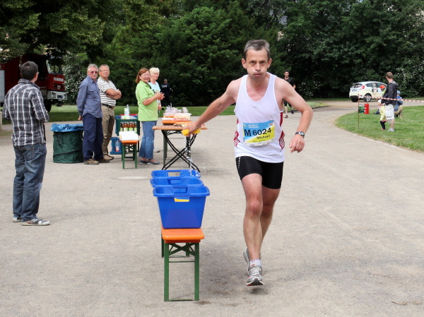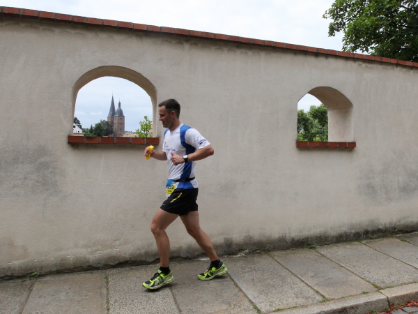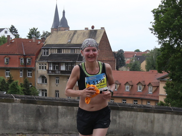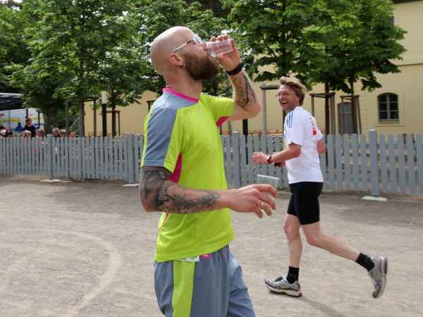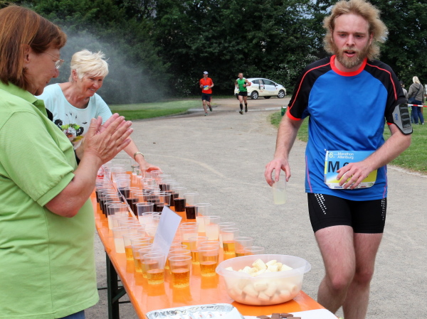 In Altenburg gibt es an jeder Verpflegungsstelle Waffelstückchen, Kekse, Gurkenscheiben, Melonenstücke und, und, und… Ja, und sogar Schokolade. Bernd Neumann hat in seinem Laufbericht vom vergangenen Jahr geschrieben, ich hätte gesagt, hier sei das Essen besser als zuhause. Das stimmt - dumm nur, dass das auch meine Frau gelesen hat…