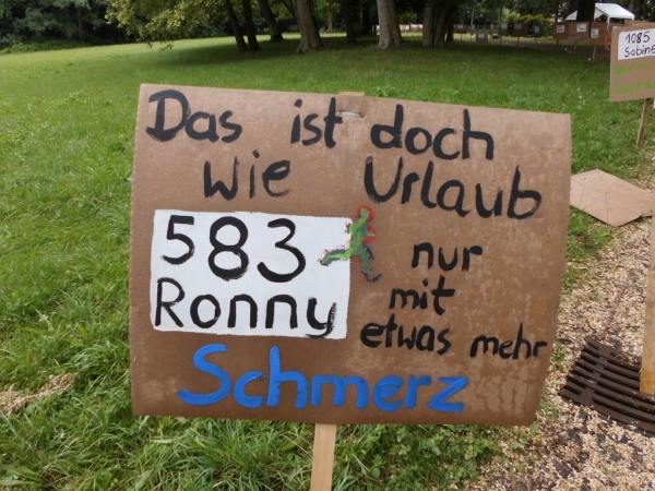 Im oberen Teil des Schlossgartens warten auf die Besucher des Marathons Musik, Speisen und Getränke sowie eine Vielzahl von Darbietungen. Leider habe ich noch etwa 25 Kilometer vor mir, sonst würde ich hier bleiben.