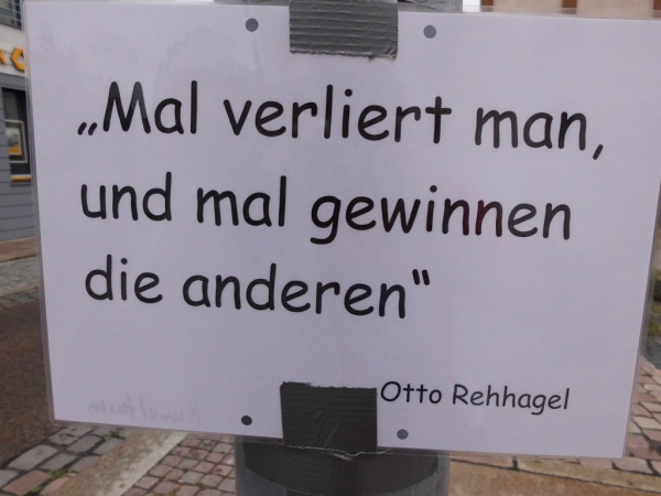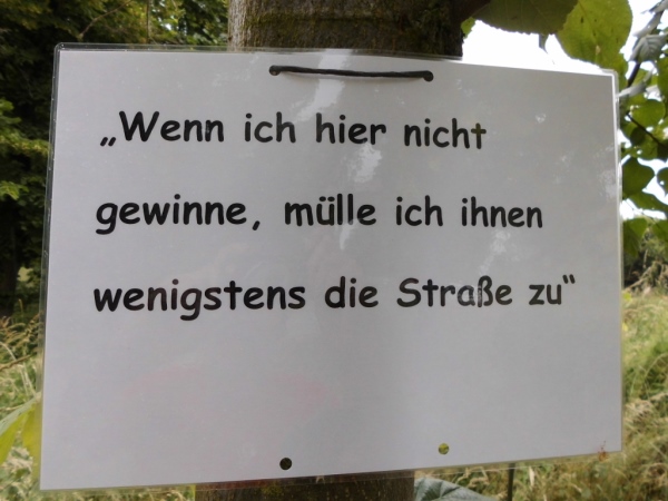 Übrigens sind die Sprüche mit Startnummern verbunden. Meine ist nicht dabei. Die vom Weihnachtsmann auch nicht. Das ist im nächsten Jahr unbedingt zu ändern. Meine Frau freut sich bestimmt, wenn ich ihr so ein Schild mit meiner Startnummer mitbringe. Blumen ist sie ohnehin nicht gewöhnt…
