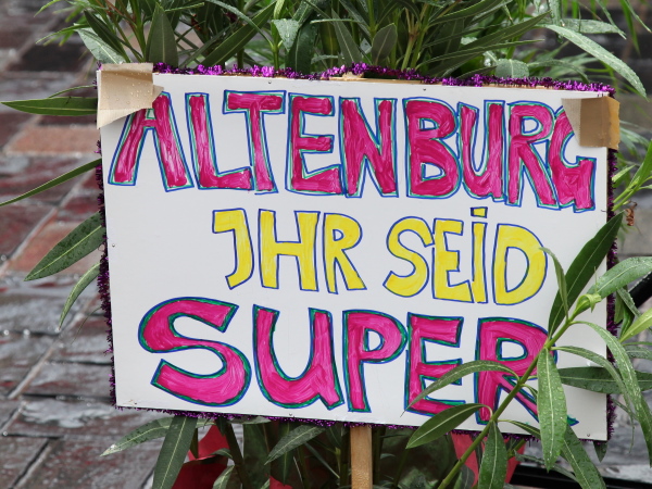 Als ehemaliger Altenburger wüsste ich eine Abkürzung, ein kurzes Stück ist es nur vom Teehaus im Schlossgarten bis zum Schlosseingang. Ich würde dadurch etwa zwei Kilometer und den Berg zum Schloss sparen. Da darf man ja wohl mal darüber nachdenken – mehr aber auch nicht!
