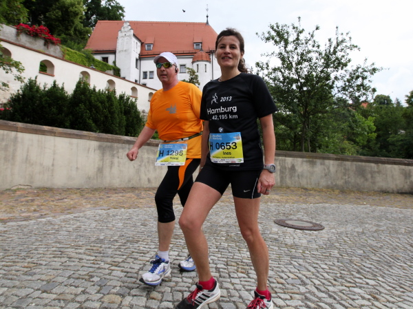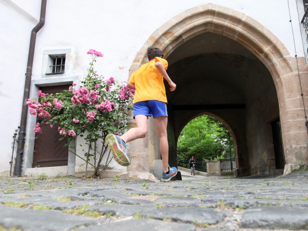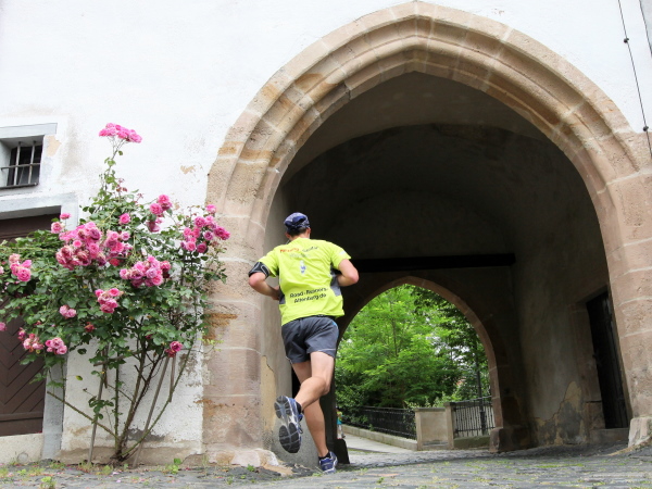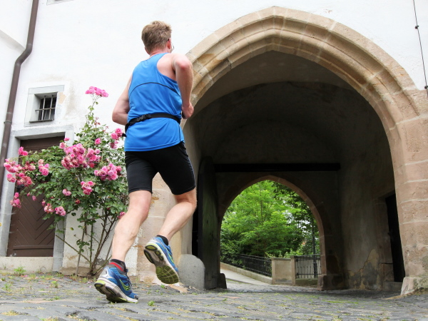 Die Schlossauffahrt hat es wirklich in sich. Wer da hochläuft, darf sich „guter Läufer“ nennen. Ich also nicht… Aber ich denke auch über eine Begebenheit nach, die ich hier vor einigen Jahren erlebte. Gehend nahm ich den kurzen, steilen Berg in Angriff und überholte dabei einen Läufer, der noch im Laufmodus unterwegs war. Zumindest sah es so aus. Beim Vorbeigehen sagte ich zu ihm: „Gib es auf – wenn du gehst bist du schneller!“ Aber der war bockig und antwortete: „Nein – ich habe mir vorgenommen, die gesamte Strecke zu laufen.“ Selbst auf die Gefahr hin, dass es länger dauert…