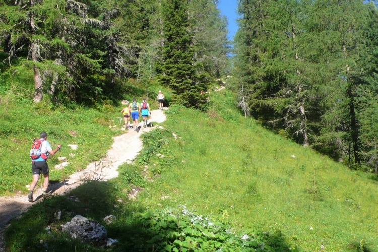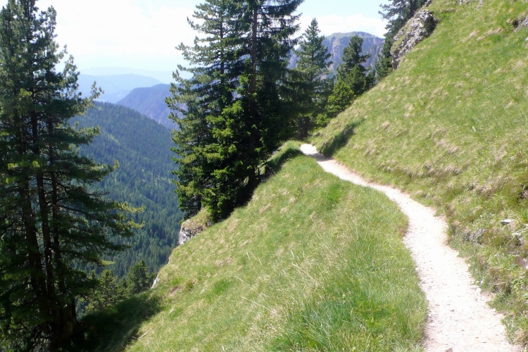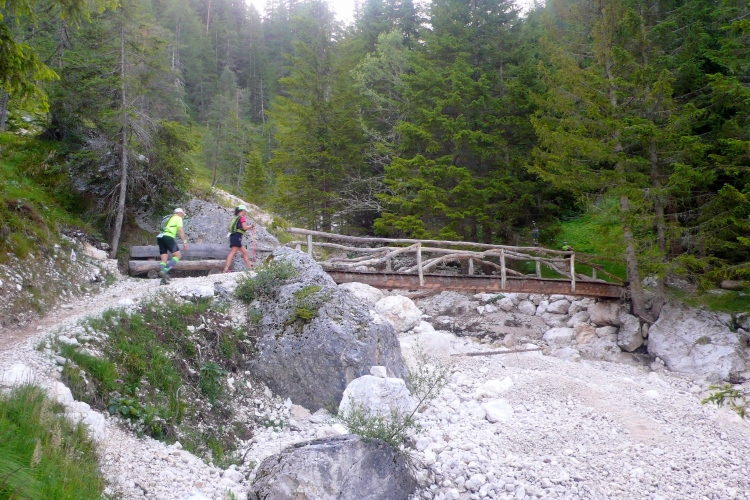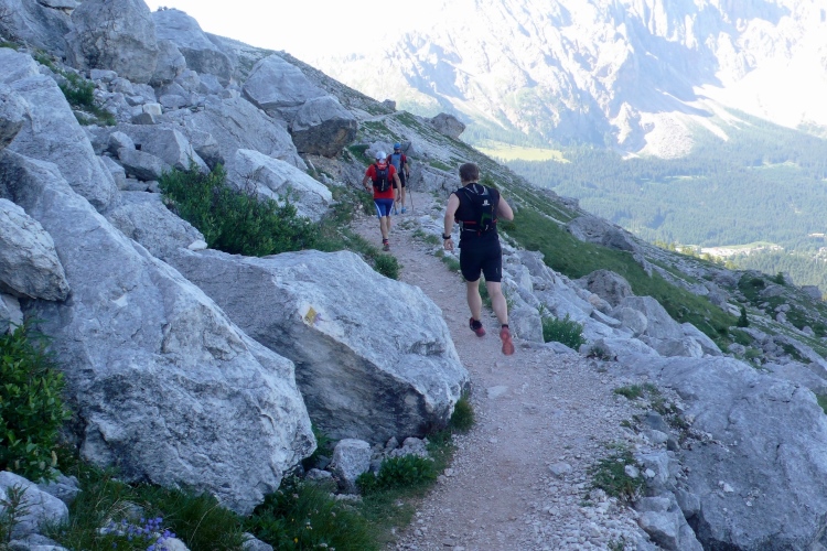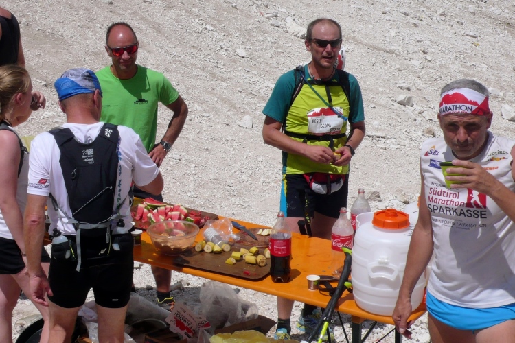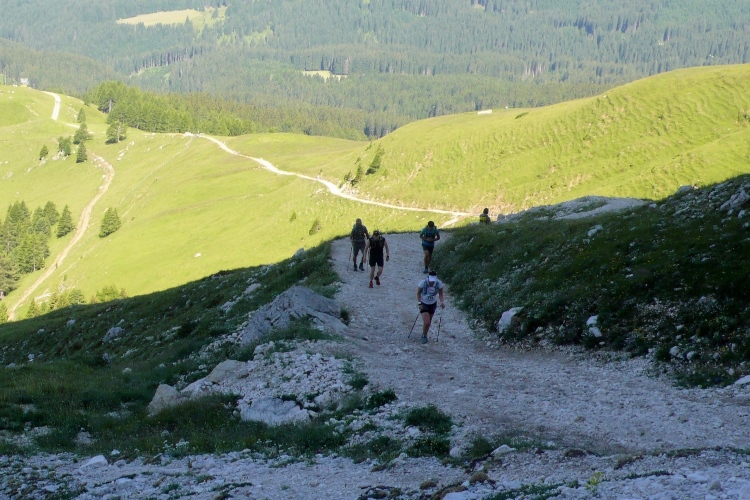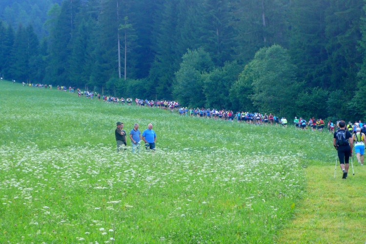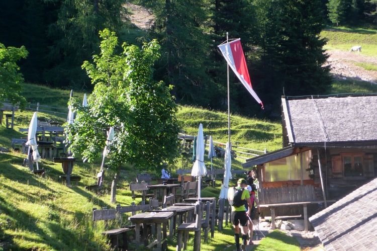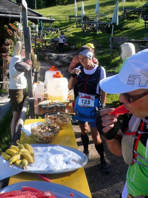 Bereits die ersten Meter zeigen: so einfach lässt Laurin uns da nicht hoch. Der Startelan legt sich schnell und nach 100 Metern gehen alle. Von der Wiese in den Wald, auf breite und schmale Wege, immer steil. Aber so richtig. Schnell gewinnen wir an Höhe und erreichen die Baumgrenze. Die Versorgung an den Hütten ist reichlich und lecker. Aber weiter bergauf. Immerhin wird es flacher und wir können laufen, endlich. Atemberaubend schöne Ausblicke lassen schnell jede Anstrengung vergessen, aber in der prallen Sonne auf steilem Schotter ist alles wieder ganz anders...