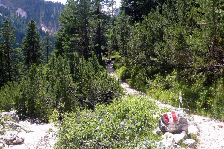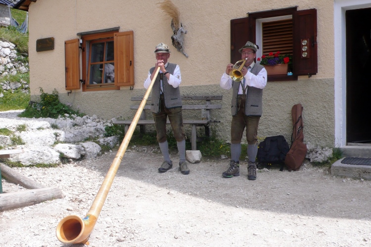 Der Abstieg erreicht nun in einem wunderbaren Hochtal einen echt laufbaren Abschnitt. Das Tal tief eingekerbt, die Wände ringsum senkrecht hoch, man wird plötzlich soo klein. Die Grasleitenhütte auf 2100 m erlebt im Moment ein Duo mit Alphorn und Trompete in Aktion. Lange begleitet mich die Musik ins Tal. Auf steilen Serpentinen ist Vorsicht geboten, lose Steine und erste Wurzeln tauchen auf.
