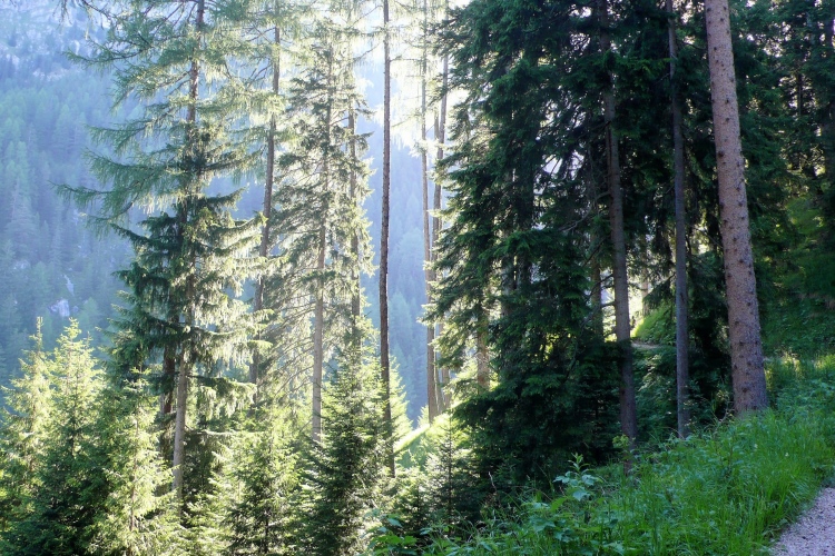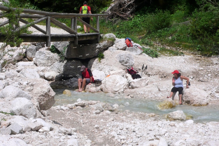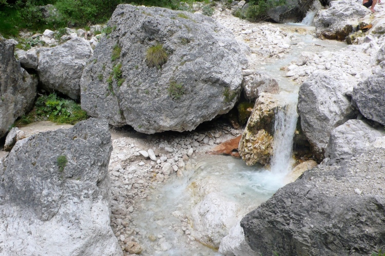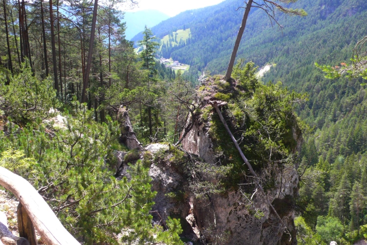 Das Tschamintal. Nur bergab. Das Knie freut sich über festen Boden. Ich mich über den Wald. Mal rechts, mal links ein Flüsschen, kaltes, klares Wasser. Es stürzt über viele Stufen viele hundert Meter ins Tal. Eigentlich genau wie ich. Ab und zu ist an Quellen Abkühlung möglich, denn je tiefer ich komme, umso höher steigt die Temperatur. Oberhalb 2000m war es recht erträglich, hier unten wird‘s nun ziemlich warm. Der Weg wird zum Steig und schraubt sich am steilsten Abhang abwärts. Sagenhafte Ausblicke zurück auf die Gipfel und abwärts zum Fluss.