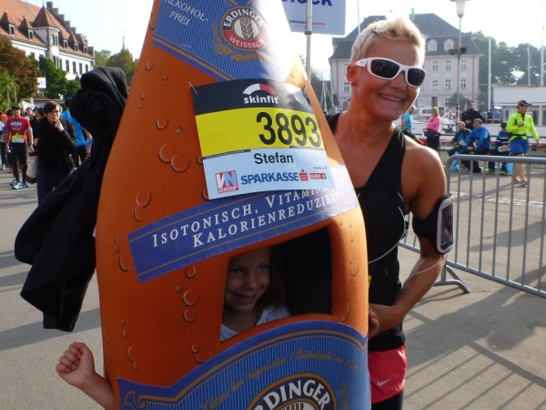 Nach fünf, sechs Minuten Rennerei verlassen wir die historische Altstadt auf der Seebrücke. Am folgenden Kreisverkehr lese ich „Isle of Running“. Rund 6000 Sportler von 63 Ländern sind vor, neben oder hinter mir. Das Zuschauerinteresse lässt im Bereich des Güterbahnhofs natürlich nach, doch einige Grüppchen haben sich auch hier und am folgenden Seebad positioniert. Stefan Heckl, ein Vereinskollege, kommt von hinten heran. „Du Verrückter, gehst du auf die drei Stunden los?“, fragt er. Kilometer zwei, 8.30 Minuten, das ist eindeutig zu schnell. Also langsamer. Mit einem lauten „lauf zu“ entlasse ich Stefan nach vorne.