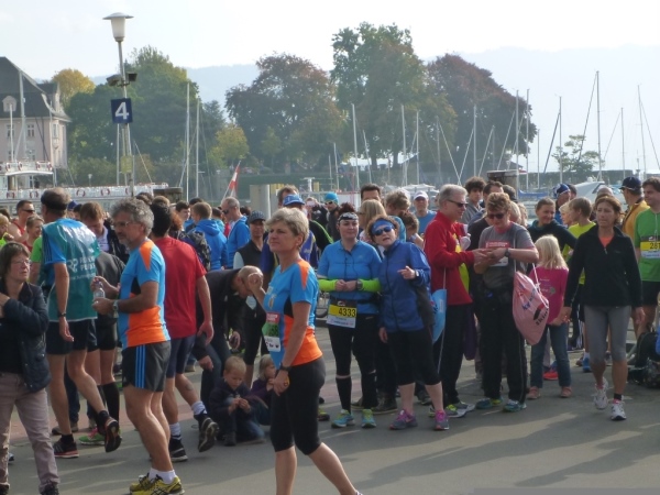 Am Wettkampftag bin ich zeitig im Hafengelände, wo die „Monroes“ den Läufern und Zuschauern bereits Dampf machen. Während sich am Samstag erst am späten Nachmittag der Nebel verzogen hat, strahlt heute der Planet vom Himmel als sei der Sommer noch da. Schon eine Stunde vor dem Start beträgt die gefühlte Temperatur in der Sonne deutlich über 20 Grad. Wer in Bregenz übernachtet hat, kann neben den Zug (Hauptbahnhof Lindau direkt neben dem Hafen) auch die Schiffsverbindung von Bregenz gratis nutzen.