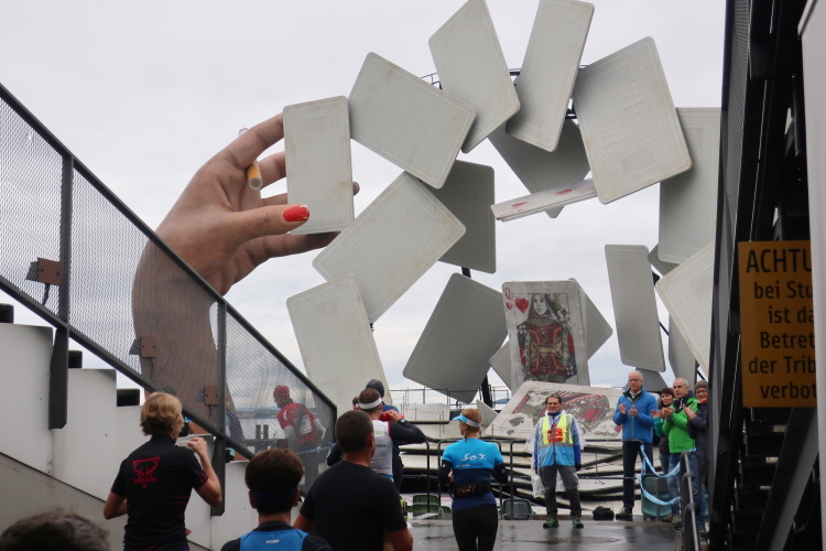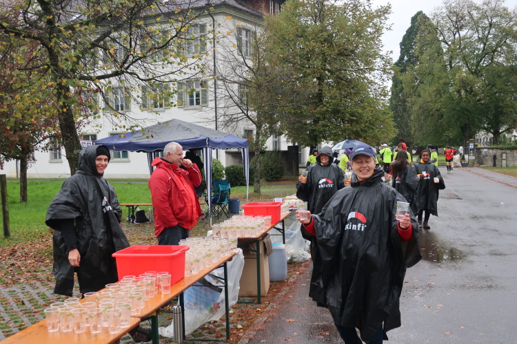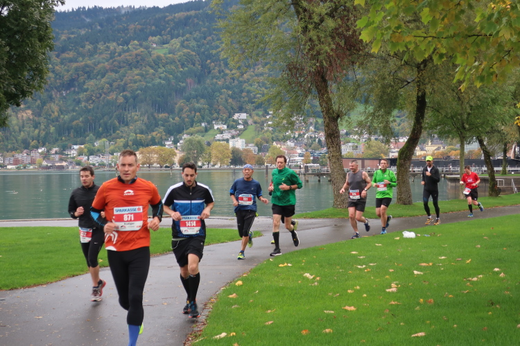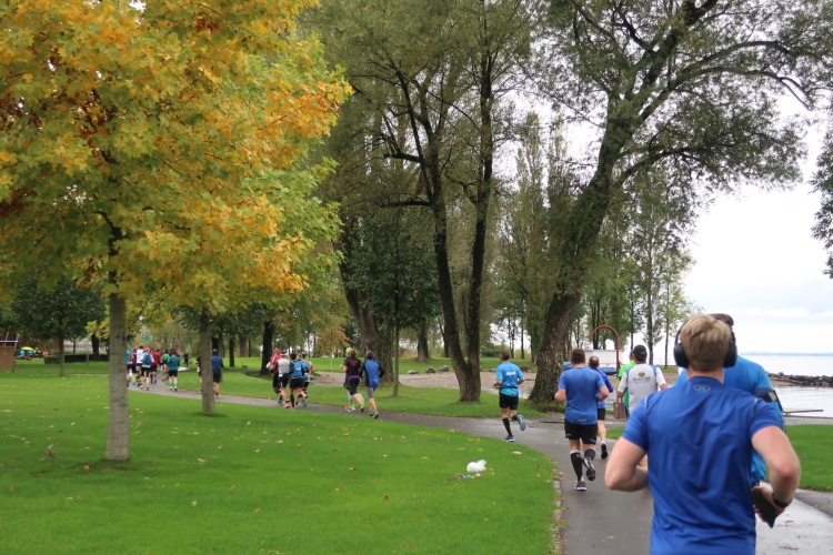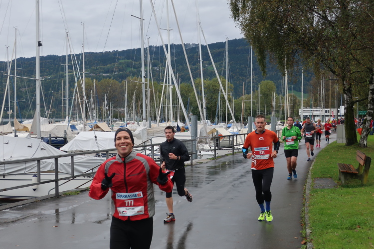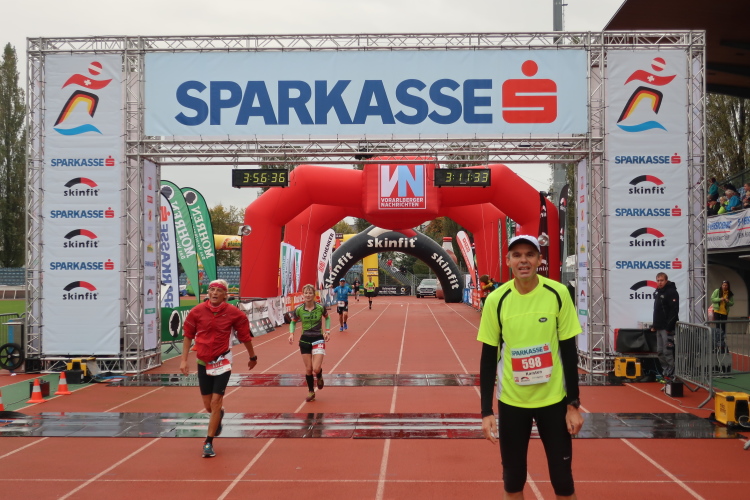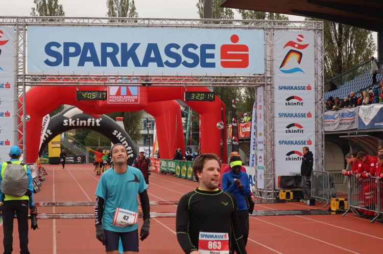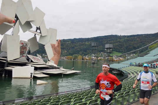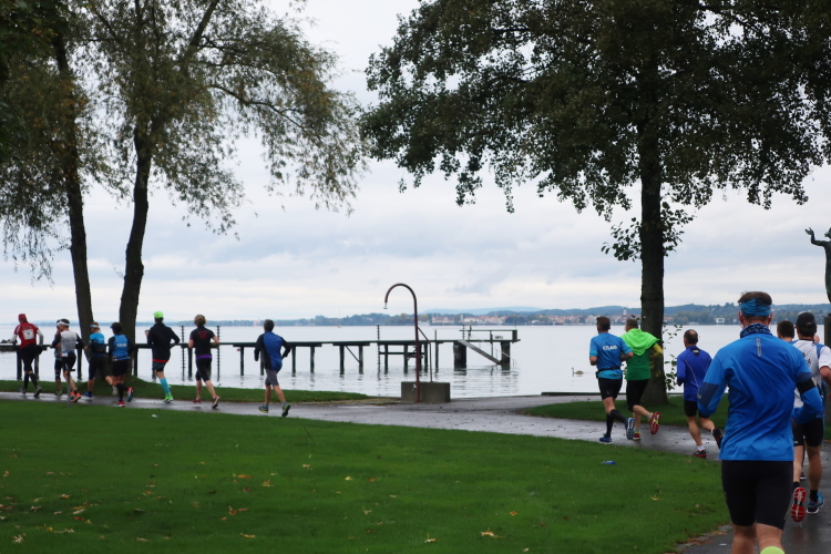 Ein Streckenhighlight auf unserem Rückweg ist bei km 40 die weitläufigen Abtei Wettingen-Mehrerau, einem bereits im 11. Jahrhundert gegründeten ehemaligen Zisterzienserkloster. Mitten hindurch führt unser Weg und weiter über eine wunderschöne Allee bis zu dem am Bodensee entlang führenden Strandweg. Von hier lässt sich das nahe Ziel schon erahnen, vor allem hören. Eine Schleife halb um das Casino-Stadion herum müssen wir zuletzt noch drehen, dann erst öffnet sich für uns das Tor zum Zieleinlauf.