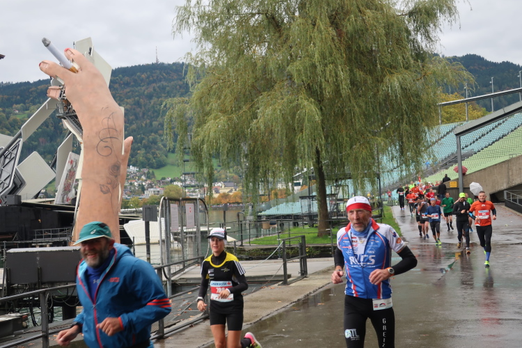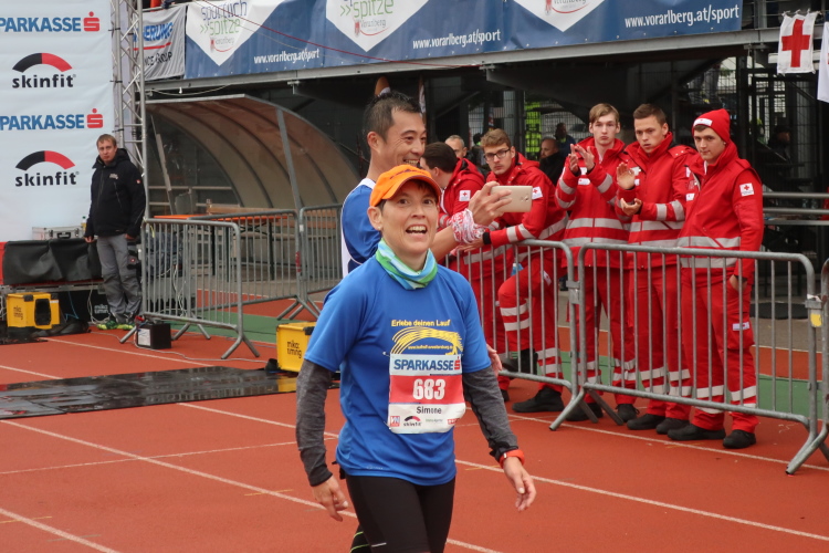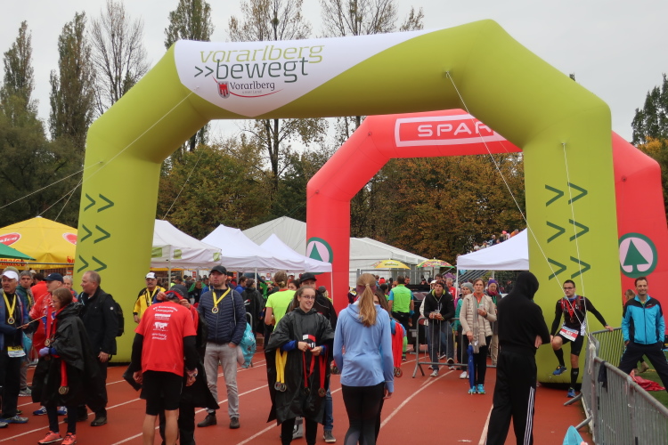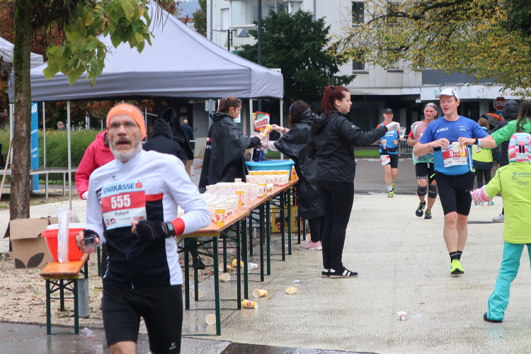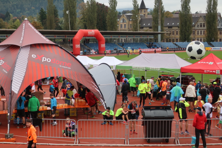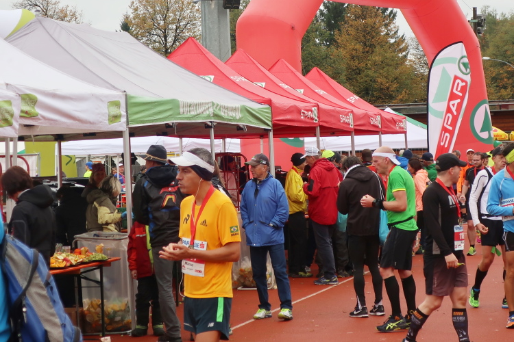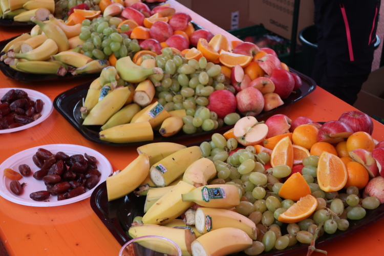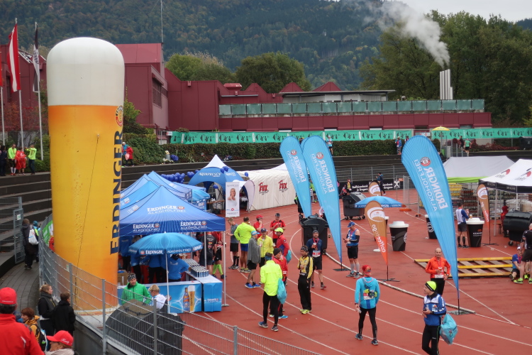 Das Wohlfühlen geht im üppig ausgestatteten Versorgungsbereich weiter. Allein schon die überquellenden Obstschalen sind ein echter Hingucker, auch wenn das alkoholfreie Weißbier wohl den noch größeren Reizfaktor hat. Ja, es hat sich gelohnt, wiederzukommen. Man muss es den Organisatoren wirklich lassen: Sie haben es geschafft, eine Laufveranstaltung zu etablieren, die über das Zielfinish hinaus in besonderem Maße positive Erinnerungen produziert. So wundert es eigentlich nicht, dass es der Drei-Länder-Marathon als einzige primär landschaftsgeprägte Veranstaltung geschafft hat, teilnehmermäßig auf Augenhöhe mit den großen City-Marathons Österreichs zu stehen.