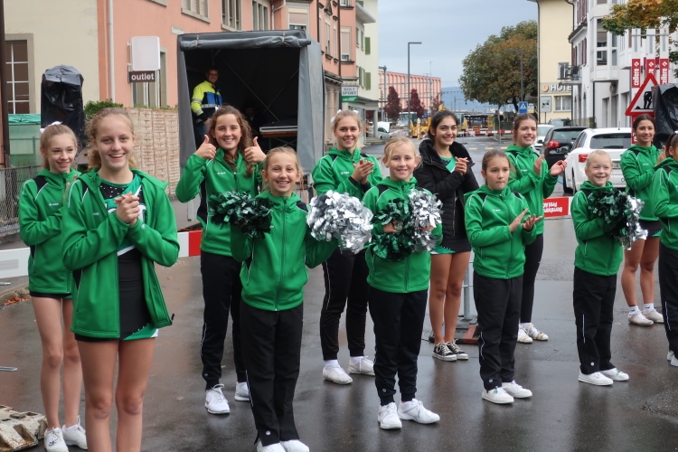 Mit Cheerleader-Girls und Musik werden wir im Herzen von St. Margrethen empfangen. Der Rest unseres Schweiz-Ausflugs ist allerdings weniger geeignet, Emotionen zu schüren. Denn der führt in langen Geraden durch das Gewerbegebiet „Rheinpark“. Am interessantesten ist da noch die neue Bogenbrücke, die ich vor fünf Jahren im Rohbau erlebte. Eine weniger schmucke parallel verlaufende Fußgängerbrücke katapultiert uns bei km 28 zurück in die grüne Wiesenlandschaft entlang des Rheins.