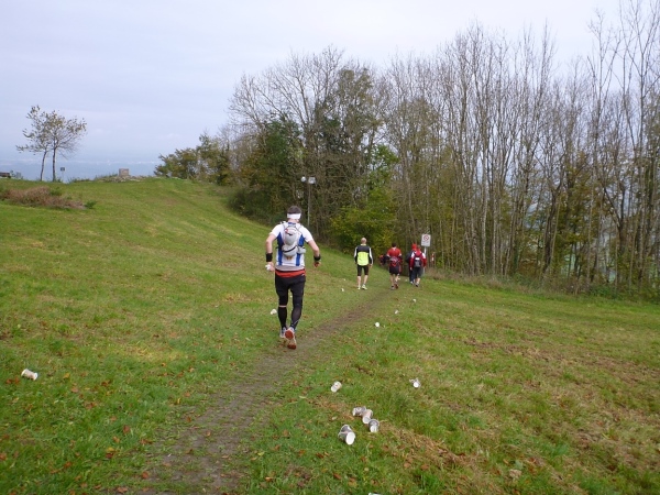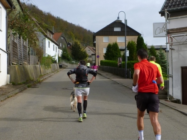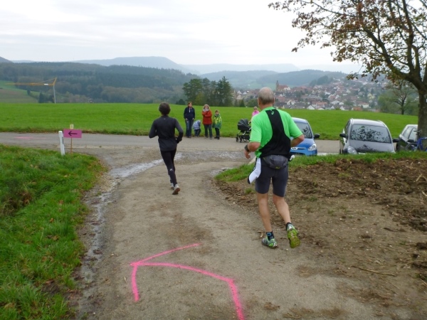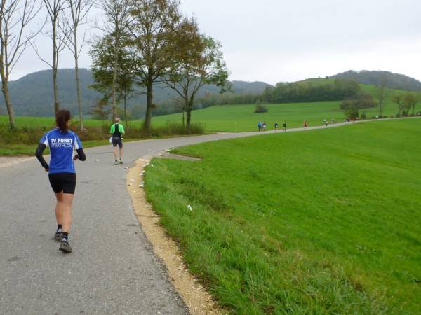 Noch im Ortsbereich wechseln wir auf die Rechbergstraße, Tendenz ist wieder bergauf. Vor dem Start wurde uns empfohlen, ein paar Körner hierfür aufzuheben. Hab ich gemacht und kann fast die ganze Steigung bis Hummelshalden joggen, während das Gros der Läufer zu Wanderern mutiert.