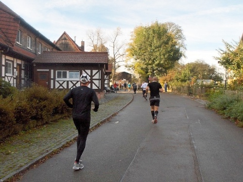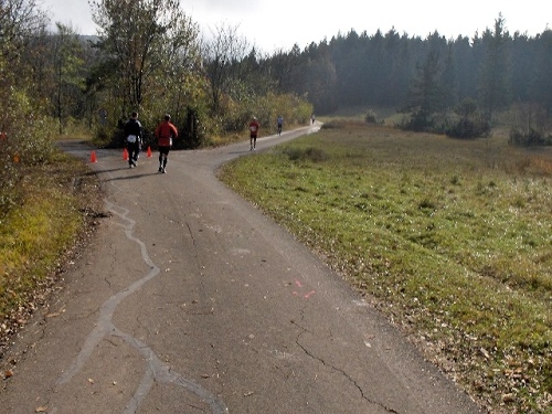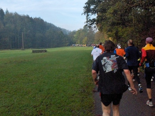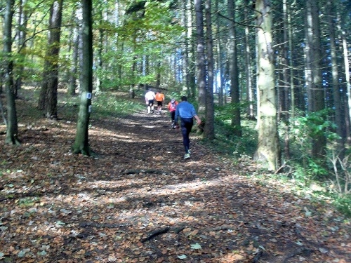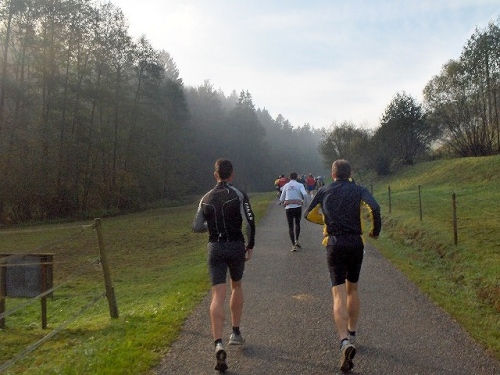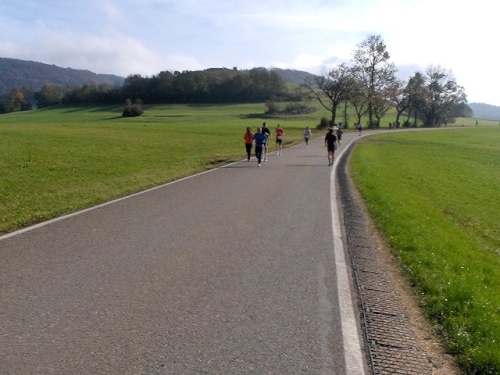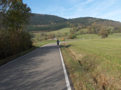Der erste kleinere Anstieg bei Kilometer fünf ließ den Puls und die Körpertemperatur etwa kräftiger ansteigen. Dies sollte aber erst ein kleiner Vorgeschmack auf das sein, was uns noch erwartete. Umgehend verloren wir wieder die soeben gewonnen Höhenmetern. Über teils rutschige Betonplatten aus den 50er Jahren betraten wir das Beutental, als uns kurz darauf der erste anzunehmende Anstieg erwartete.