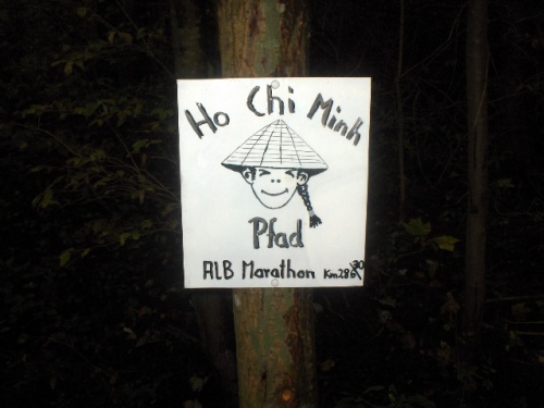 Bei Kilometer 28,6 grinst mich ein Chinese auf einem Schild an und kündigt den Ho-Chi-Min-Pfad an. Inwieweit dieser seinem Namensvetter auf dem Emmendamm in Biel ähnelt, kann ich nicht beurteilen. Ein Trail mit Wurzeln und Steinen übersät brachte uns auf den Gipfel des Stuifen, der mit 724 Metern der höchste der drei Kaiserberge ist. Hier war auch der Kulminationspunkt des Laufes erreicht.