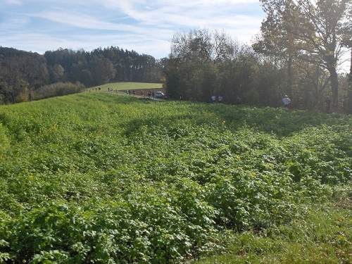 Am Gipfel des Hohenstaufen angekommen, wurden wir handschriftlich erfasst und machten uns nach der Umrundung einer Eiche wieder auf den Abstieg. Die griffigen Sohlen meiner Trails sorgten dafür, dass ich ohne Rutschpartien den Hohenstaufen wieder hinuntereilen konnte. Ein scharfer Linksknick erforderte ein hohes Maß an Konzentration und Koordination, wollte man nicht wie seinerzeit Jan Ullrich bei der Tour de France im Graben landen. Innerhalb eines Kilometers verloren wir nun rund 150 Höhenmetern, bevor es leicht wellig in Richtung Rechenberg ging.